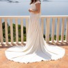 Dress is a halfpenny 3 (Uk 12) my final measurements were chest: 90cm, waist 80cm, hips 100cm. I am 5ft 5 and wore 2 inch heels on the day. Dress has a bustle to tuck up the train and also a wrist loop for individual preference.