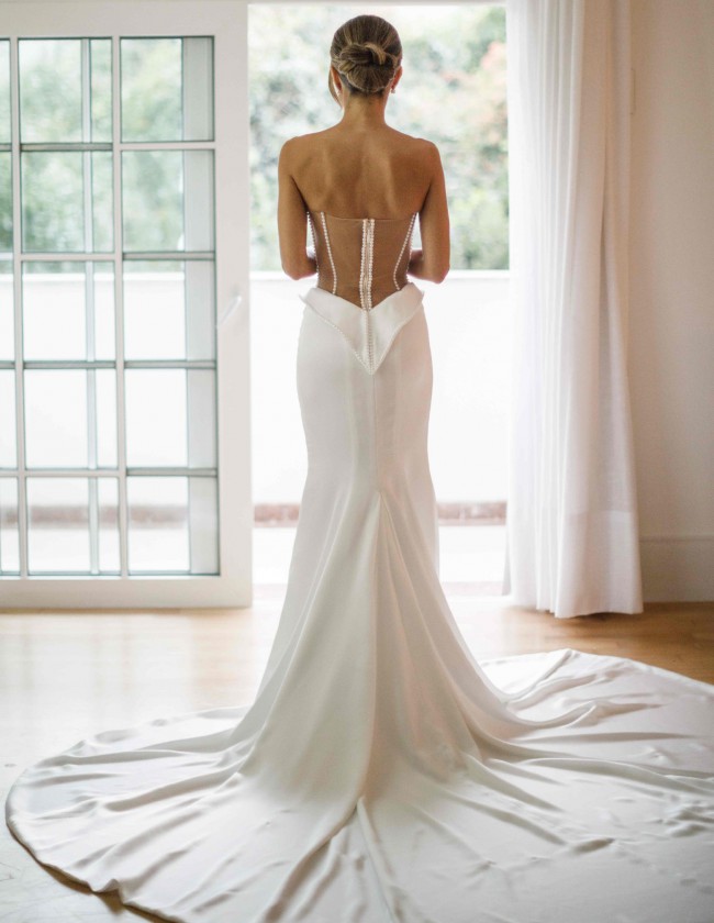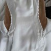 Great item in excellent condition. It was reduced to my body size before the wedding, since I lost weight and the waist circumference became smaller. I wore the dress for 4 hours counting getting ready, cerimony, first dance and cutting the cake in my wedding and changed for the second look. The pearls lost slightly their shine after the cleaning process. It just comes with the dress. I didn’t buy the extra voluminous skirt.