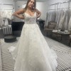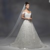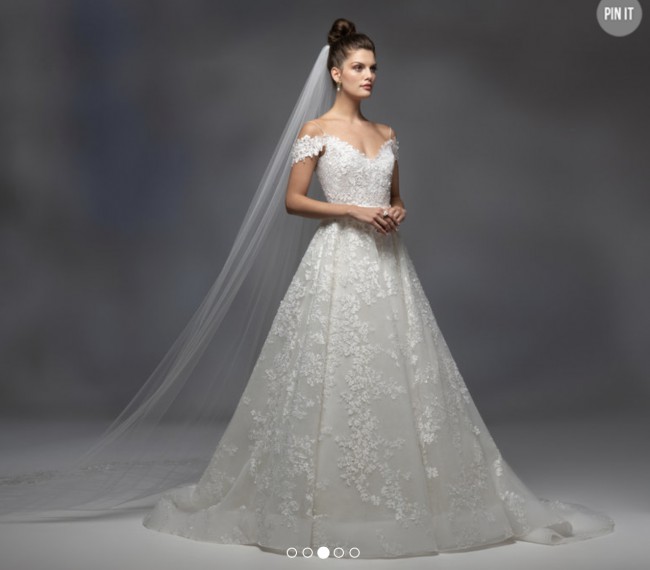 Lazaro bridal gown - Ivory petal embroidered A-line gown, strapless sweetheart neckline with off the shoulder cap sleeve, corset bodice, natural waist, circular skirt with horsehair trim, chapel train.