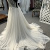 The sheer back offers a stunning surprise, adorned with intricate beading, crystals, and pearls that catch the light with every turn. This dazzling detail not only enhances the gown's elegance but also adds a modern twist, making you feel like the enchanting bride you’ve always envisioned. Designed to complement every contour, this floor-length gown effortlessly merges comfort with style, ensuring you stay radiant throughout your celebration.