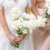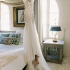 Included in this bridal ensemble is a matching silk tulle two-tiered veil.