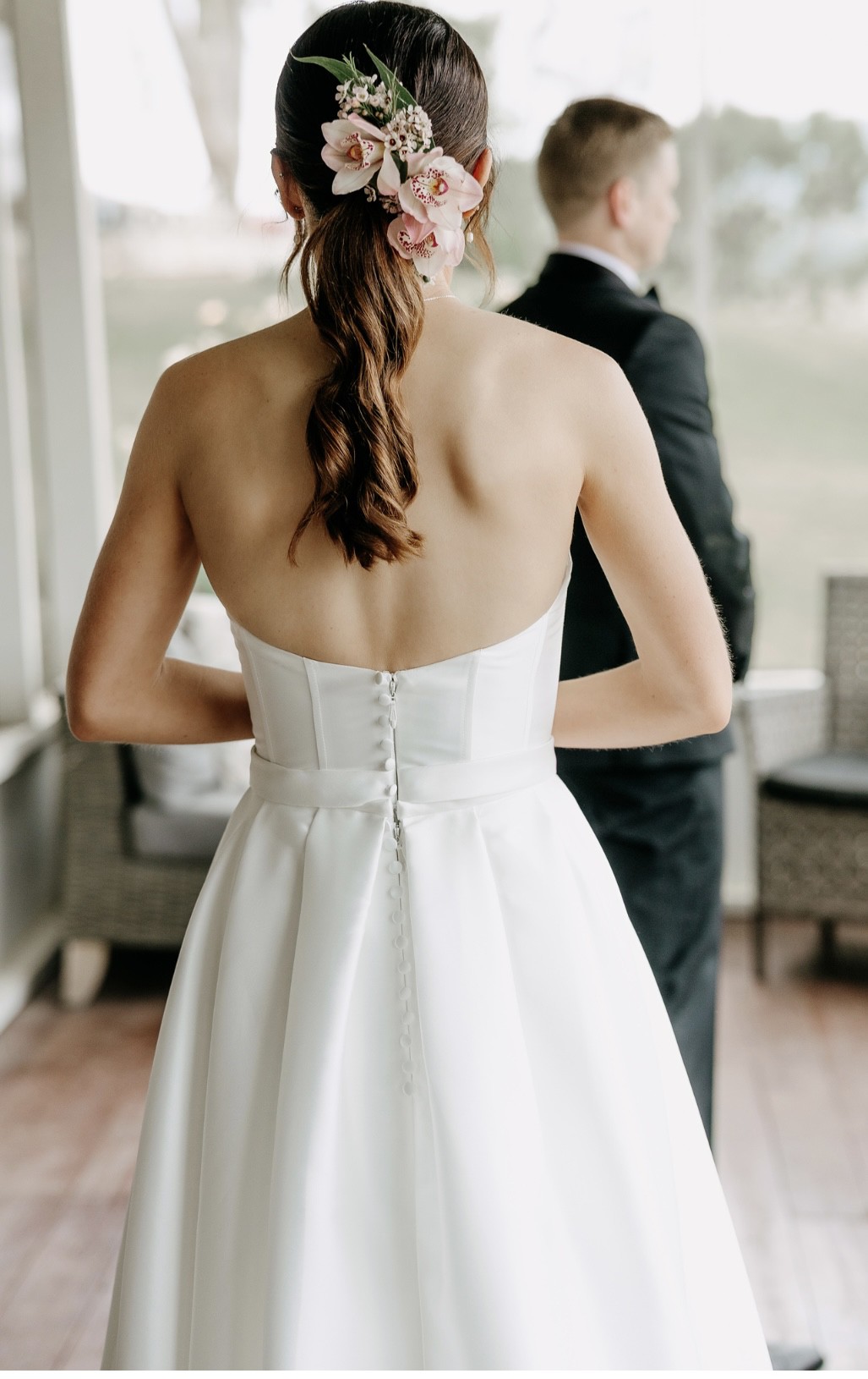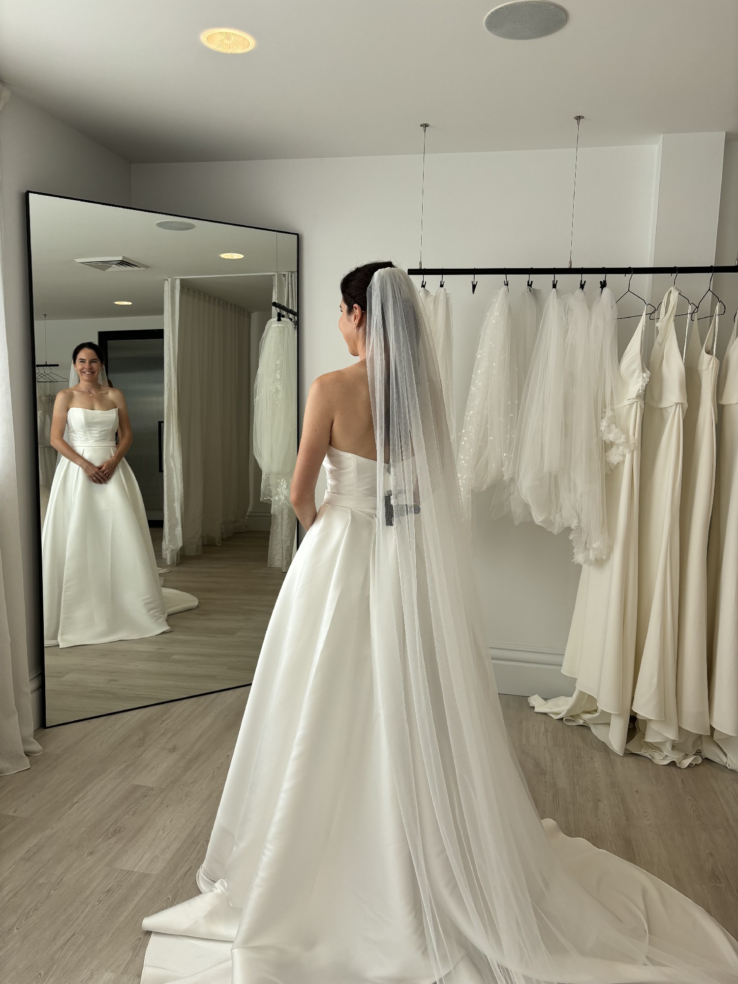 - It was altered at wonderful Nadi’s Bridal Alternations slightly for length and waist, it includes a bustle