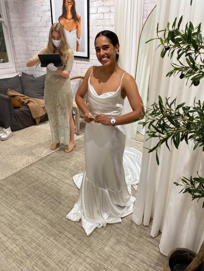 It’s brand new, never worn and never altered. I absolutely love it and would be so happy for it to be part of someone else’s wedding.