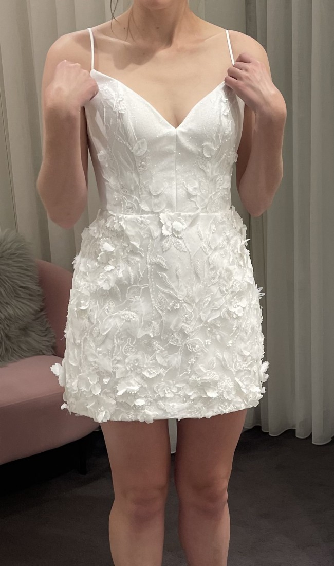 The perfect reception dress! This Eva Lendel Soilel is a beautiful and unique mini wedding dress. Never been worn and purchased brand new. Due to incorrect sizing and limited time upon delivery of the gown, an alternate wedding dress was purchased and worn at our wedding last year.