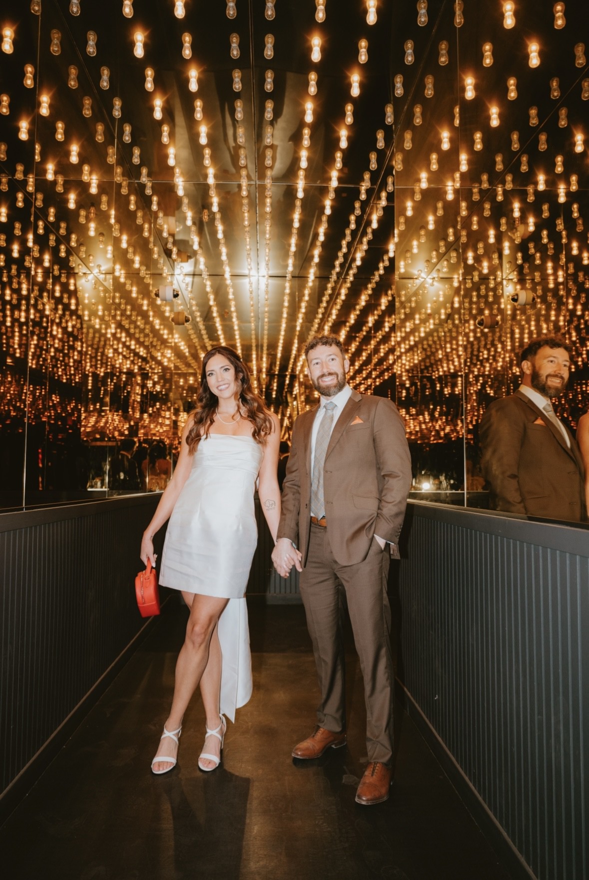 A dramatic back bow commands attention on this scene-stealing strapless mini.