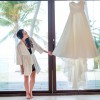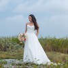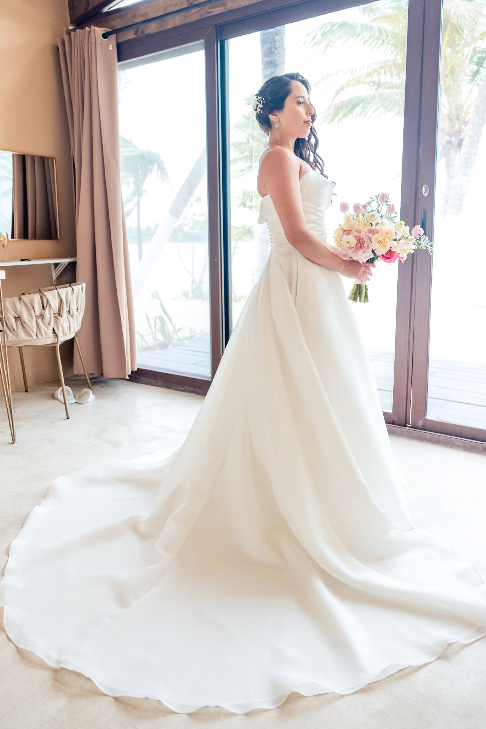 A princess style dress for the modern bride. Created in crisp organza and with a draped sweetheart bodice and deep pockets inside the skirt’s wide pleats. A petticoat adds extra volume for a grand entrance.