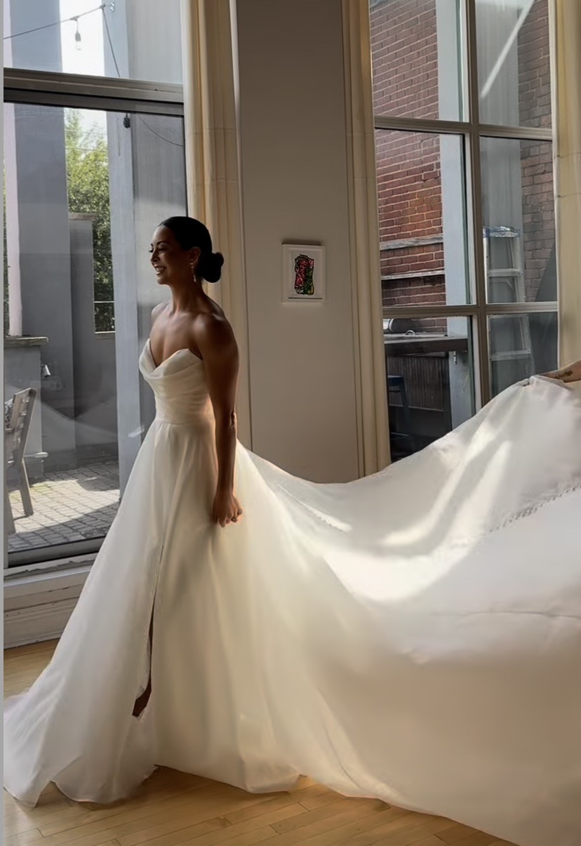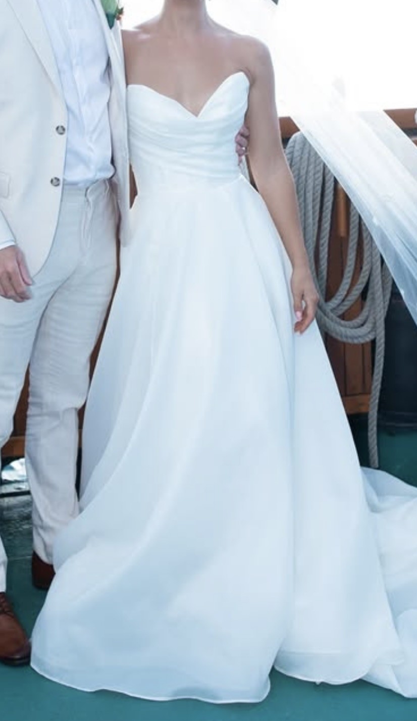 I fell in love with this dress the minute I put it on and was the first dress that made me truly feel like a bride. I've had some changes in plans and am selling it unaltered and unworn aside from my pick up appointment. Oh and it has pockets!
