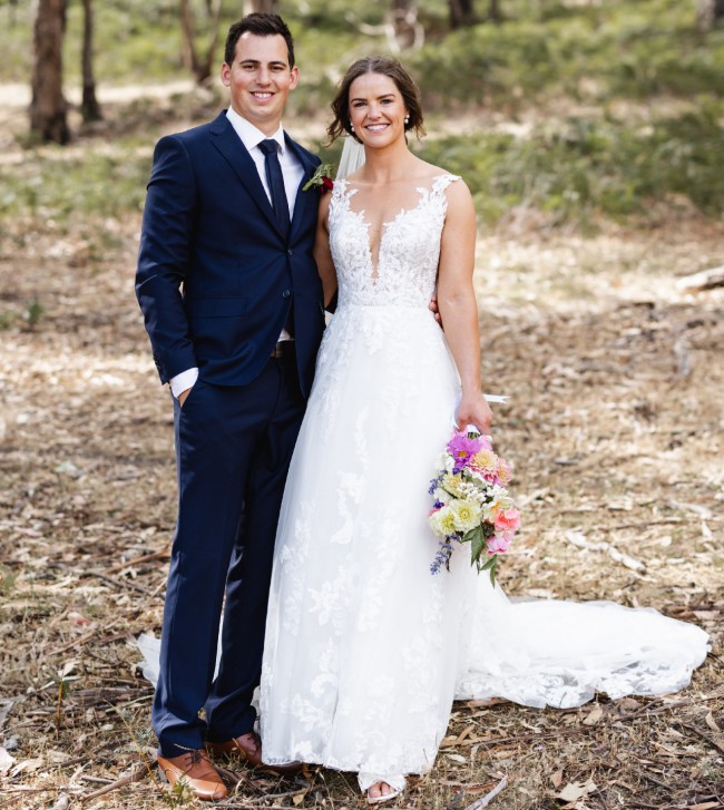 Thea: purchased from Confetti last year. Ordered in Ivory. Minor and only flaw 1 button at the back needs to be stitched back on. Would imagine it would be a simple job.