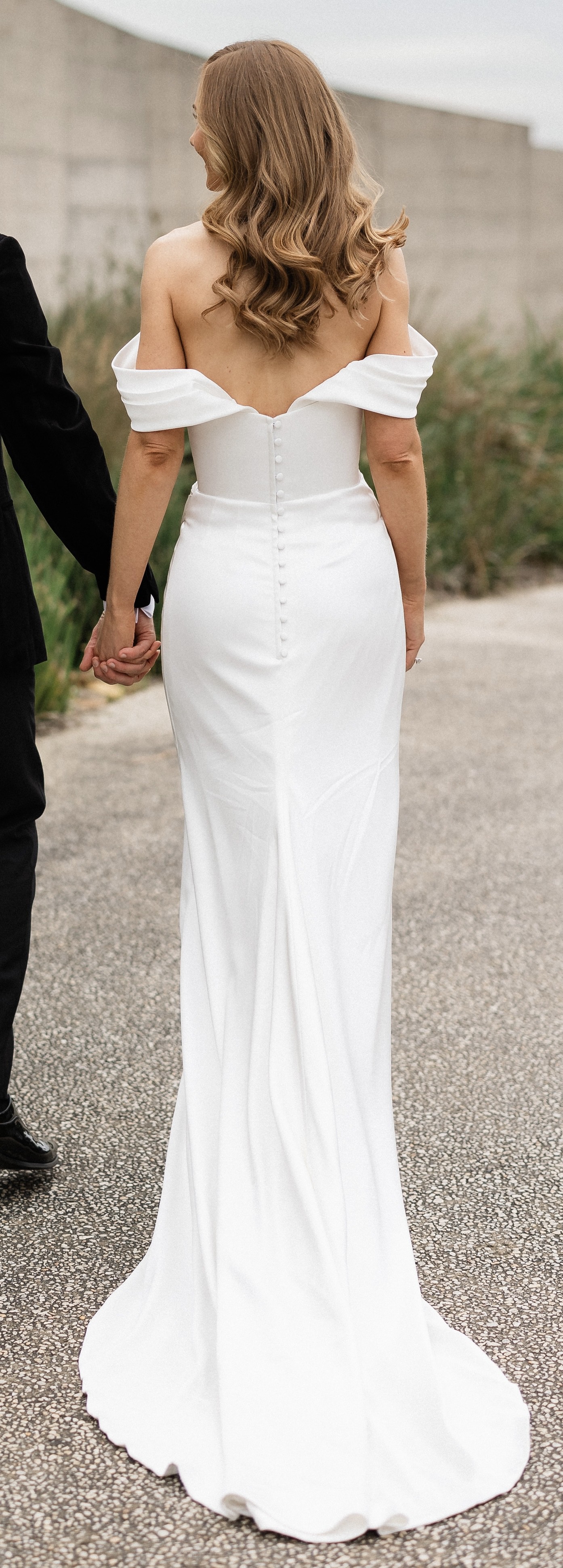 Gorgeous off the shoulder little sleeves to transition from ceremony to reception