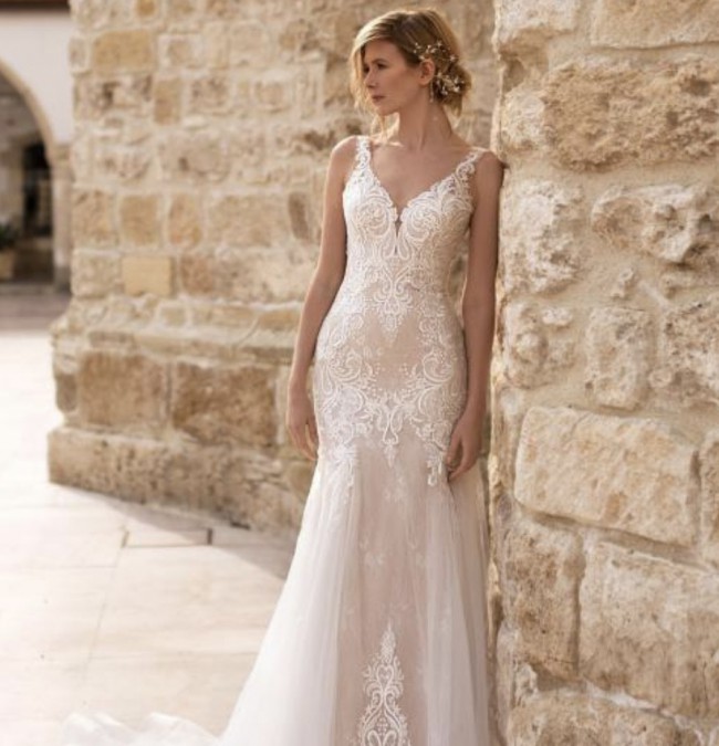 Stunning ivory wedding dress by Daniela Di Marino. Style is called Isa. Features lace detailing with a fit and flare silhouette. Size 12. Never worn and tags attached. Unaltered. Willing to negotiate on price, please message for details.