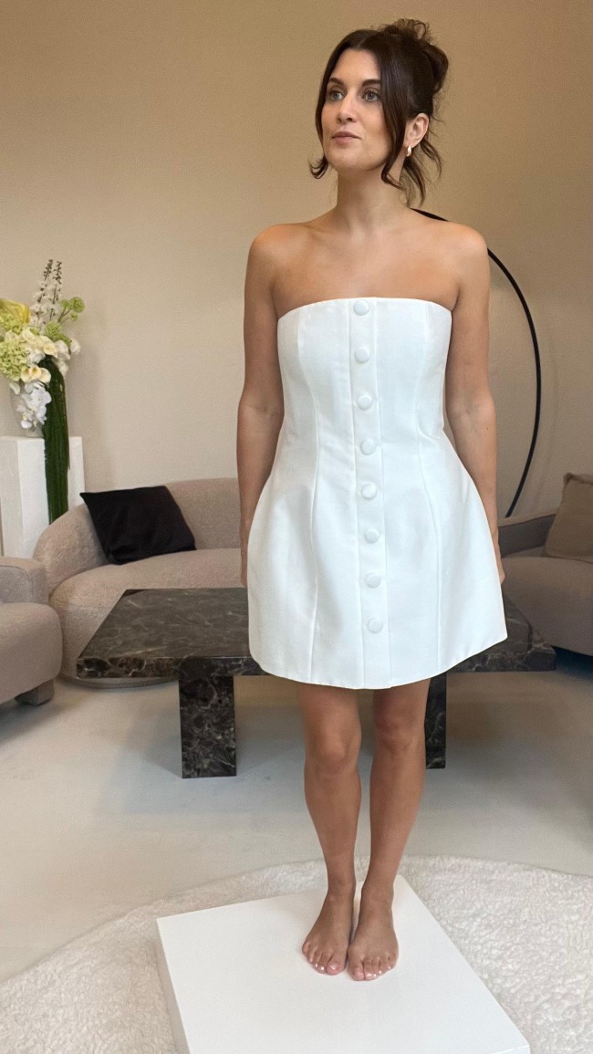 You’re as bright as a button in Edie. A fully corseted, strapless mini with that features distinctive oversized buttons and exaggerated hip shaping - you’ll have every event covered.