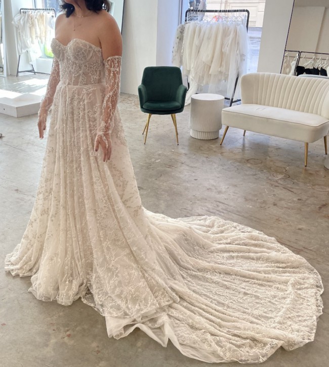 This is the stunning Francesca gown by Netta BenShabu, from the luxurious La Réverie Pre-Fall 2024 collection. This gown is in perfect condition, never altered, and includes the original gloves.