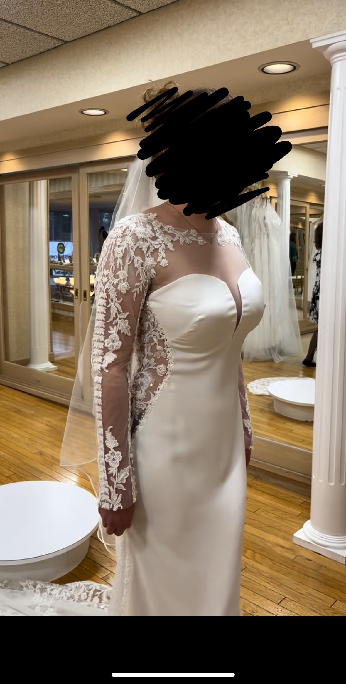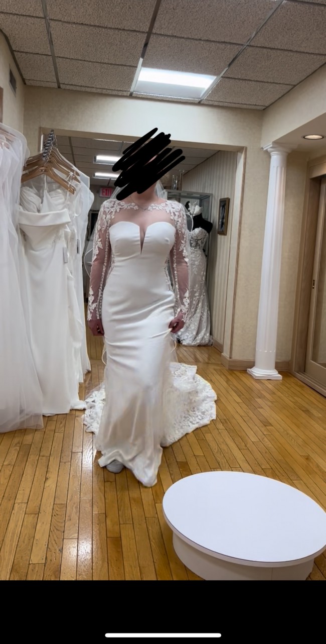 Size 10- no alterations done. I am typically a size 8 in clothes, 5’6 height, and this fit me like a glove. Just decided to go in a different direction. No imperfections on the dress. Dress is originally 4,250$. Stunning designer dress. Make an offer!!