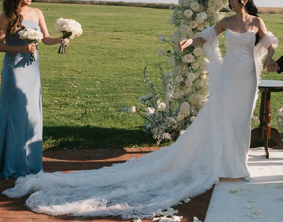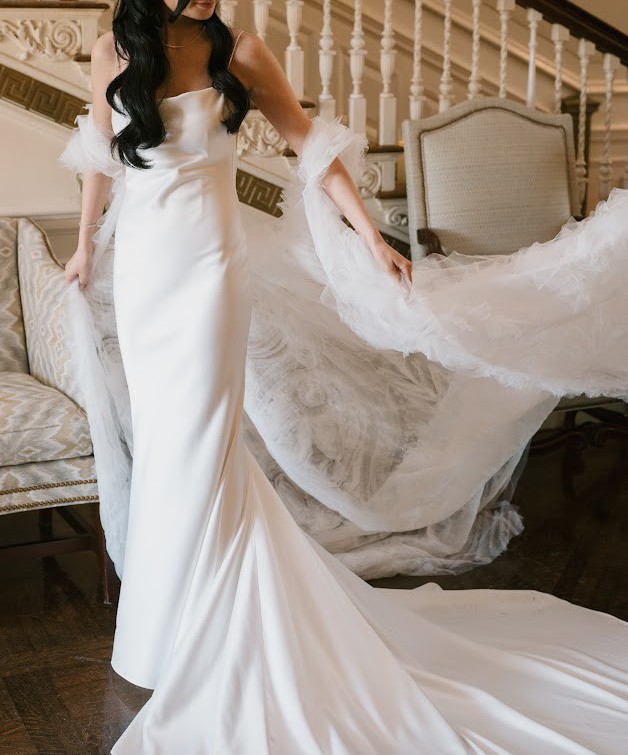 This gown pairs beautifully with the Robin Cape from Ines Di Santo, which I am also selling. I’m happy to offer a discounted price for purchasing both together. Professionally dry-cleaned and in good condition, the Moss gown is ready for its next bride to make her wedding day unforgettable.