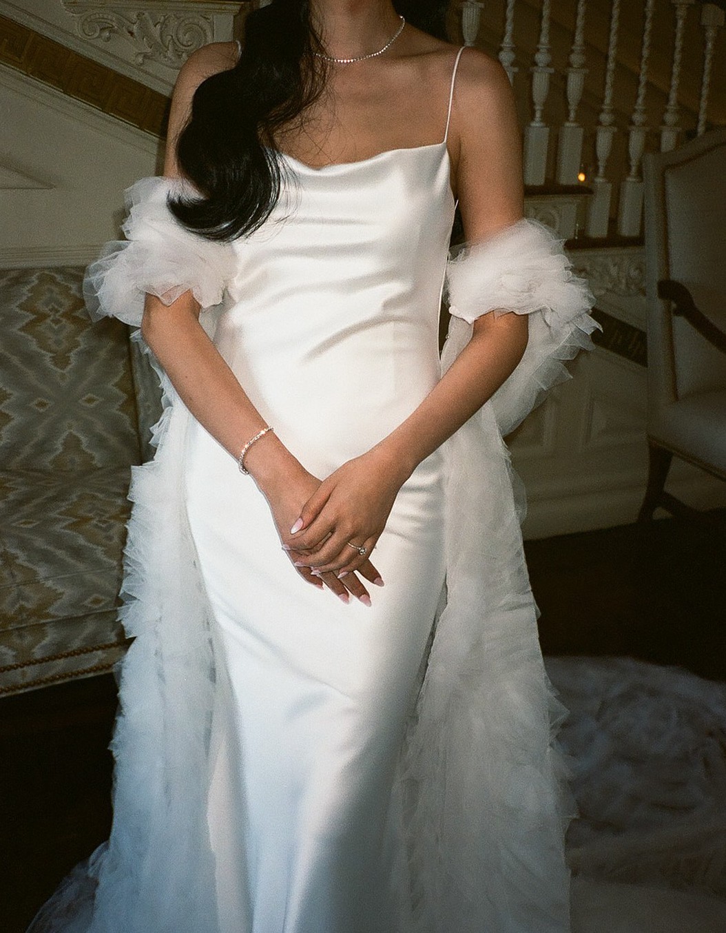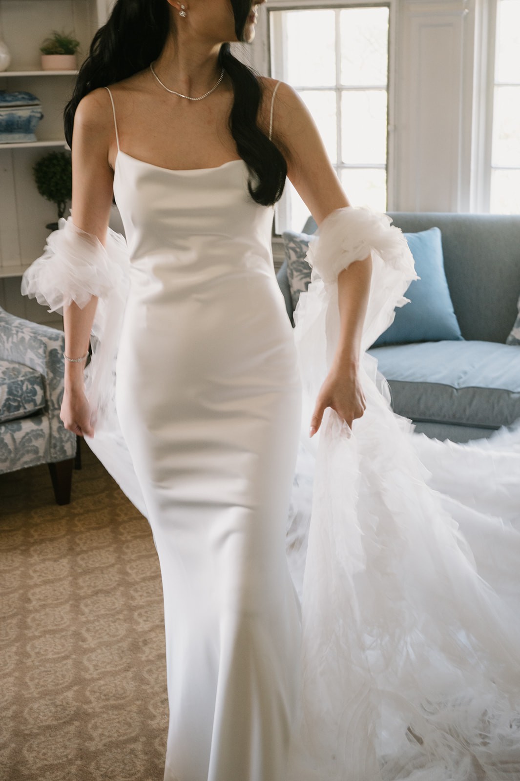 - No bustle added (I personally didn’t love the look of the buttons), but a hidden string loop was added to the inner two layers so I could pick up the train and loop it over my elbow – great for dancing or photos!