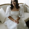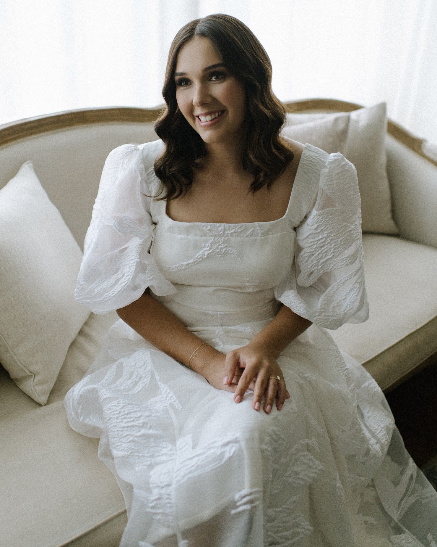 Amelie is the perfect mix of romantic and modern—ideal for the fashion-forward bride. The ivory hue, paired with delicate details, creates a timeless yet fresh bridal look.