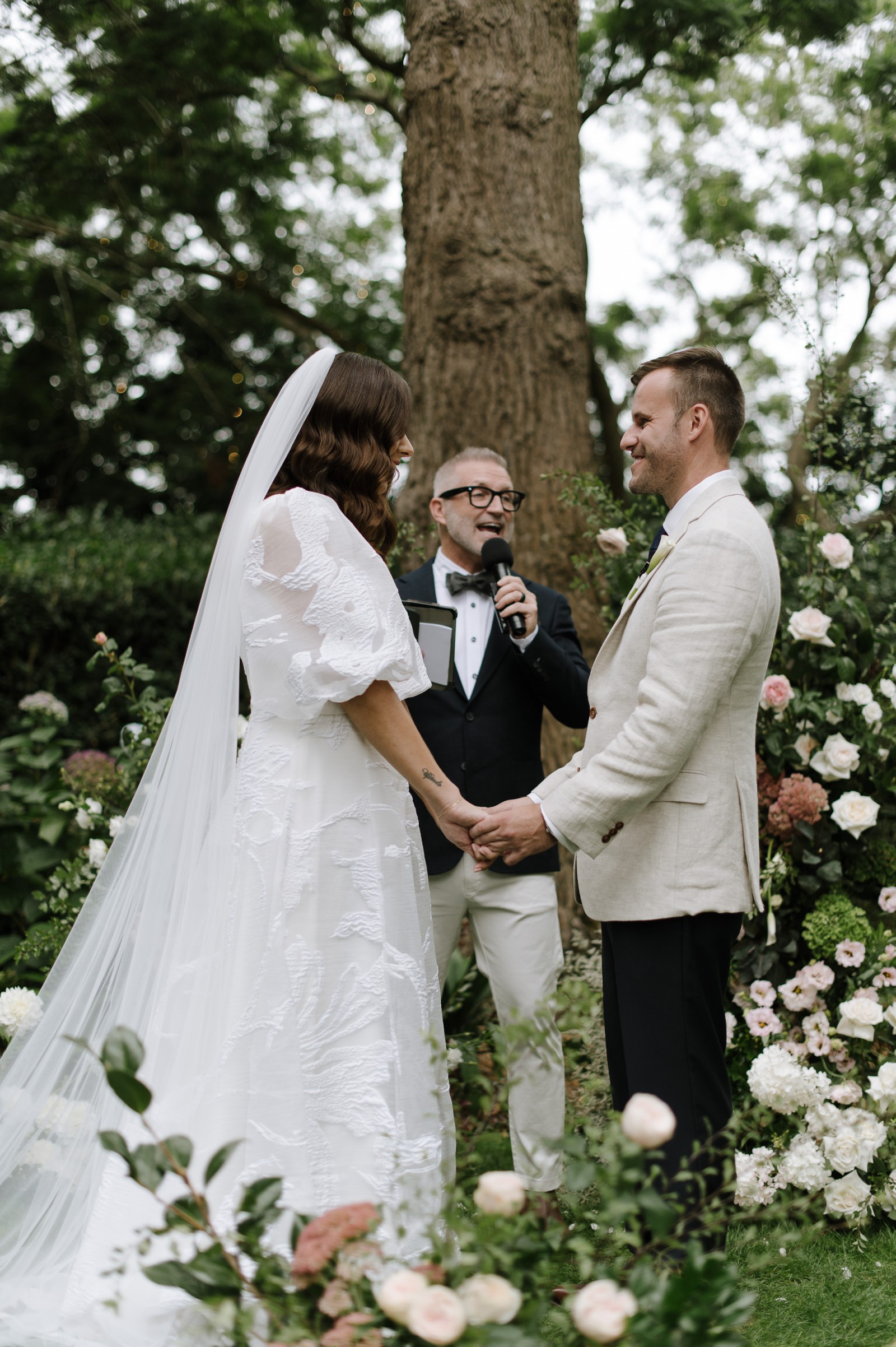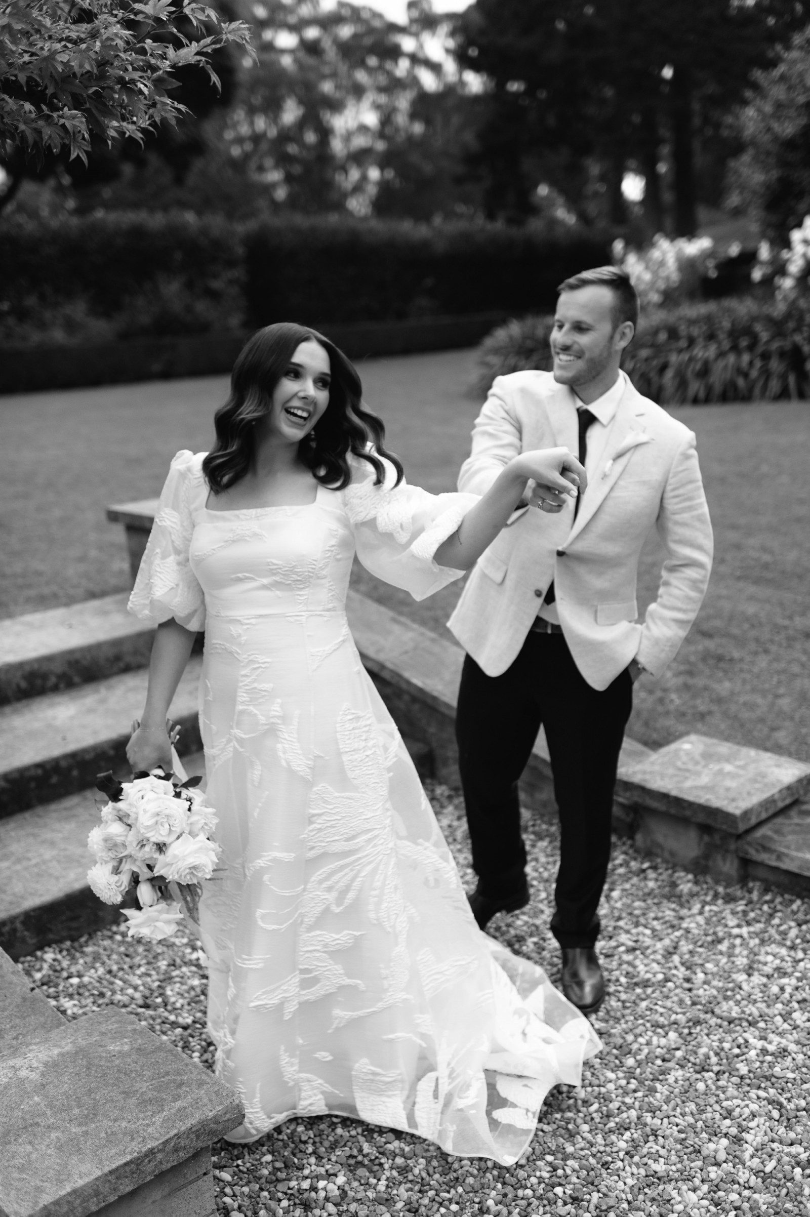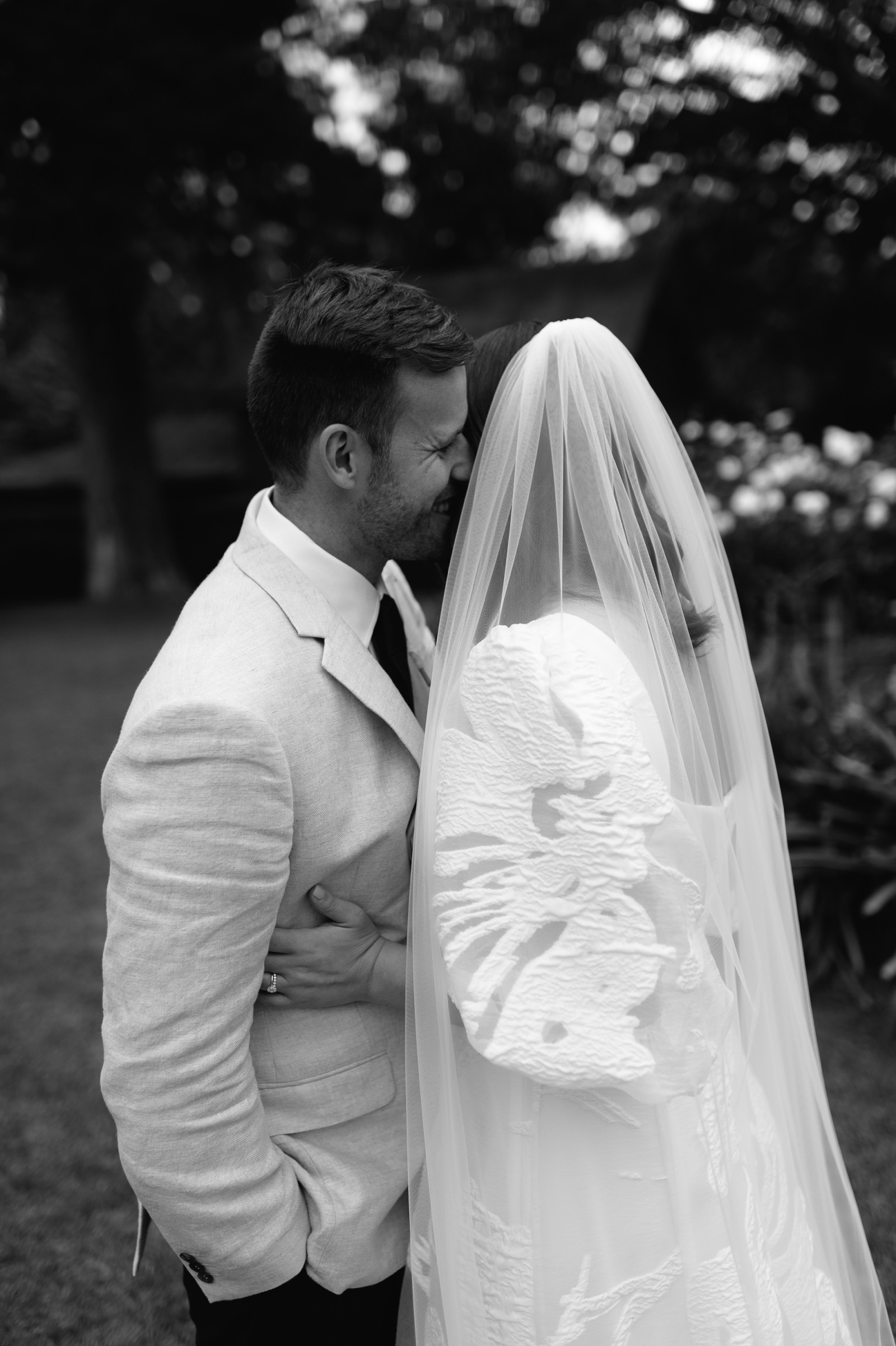 The Prea James Amelie Gown is feminine, whimsical and a dream for any bride looking to make a statement. Designed with a square neck bodice, a sculptural fluted skirt and exaggerated puff sleeves, this gown is crafted from a beautiful burnout organza fabric that adds texture and depth.