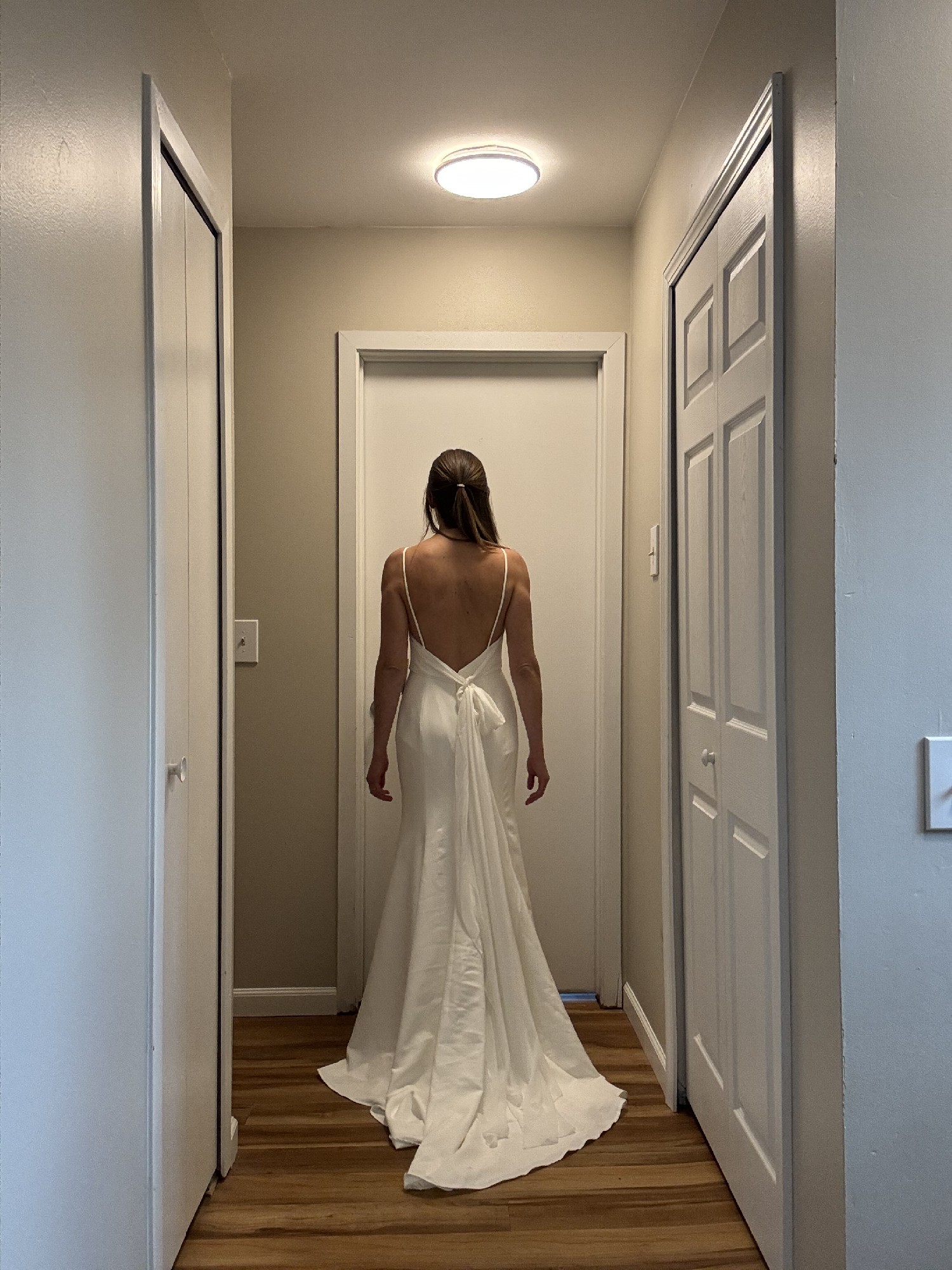 Beautiful dress! Brand new with tags, unaltered. I ended up going with a different style, but this dress is so comfortable and elegant!