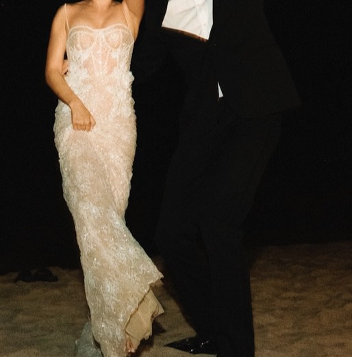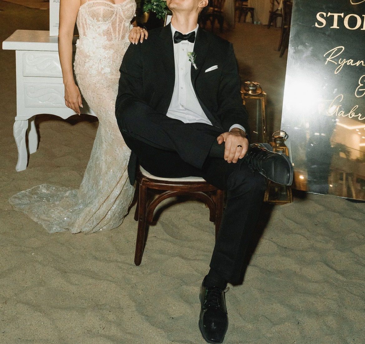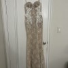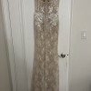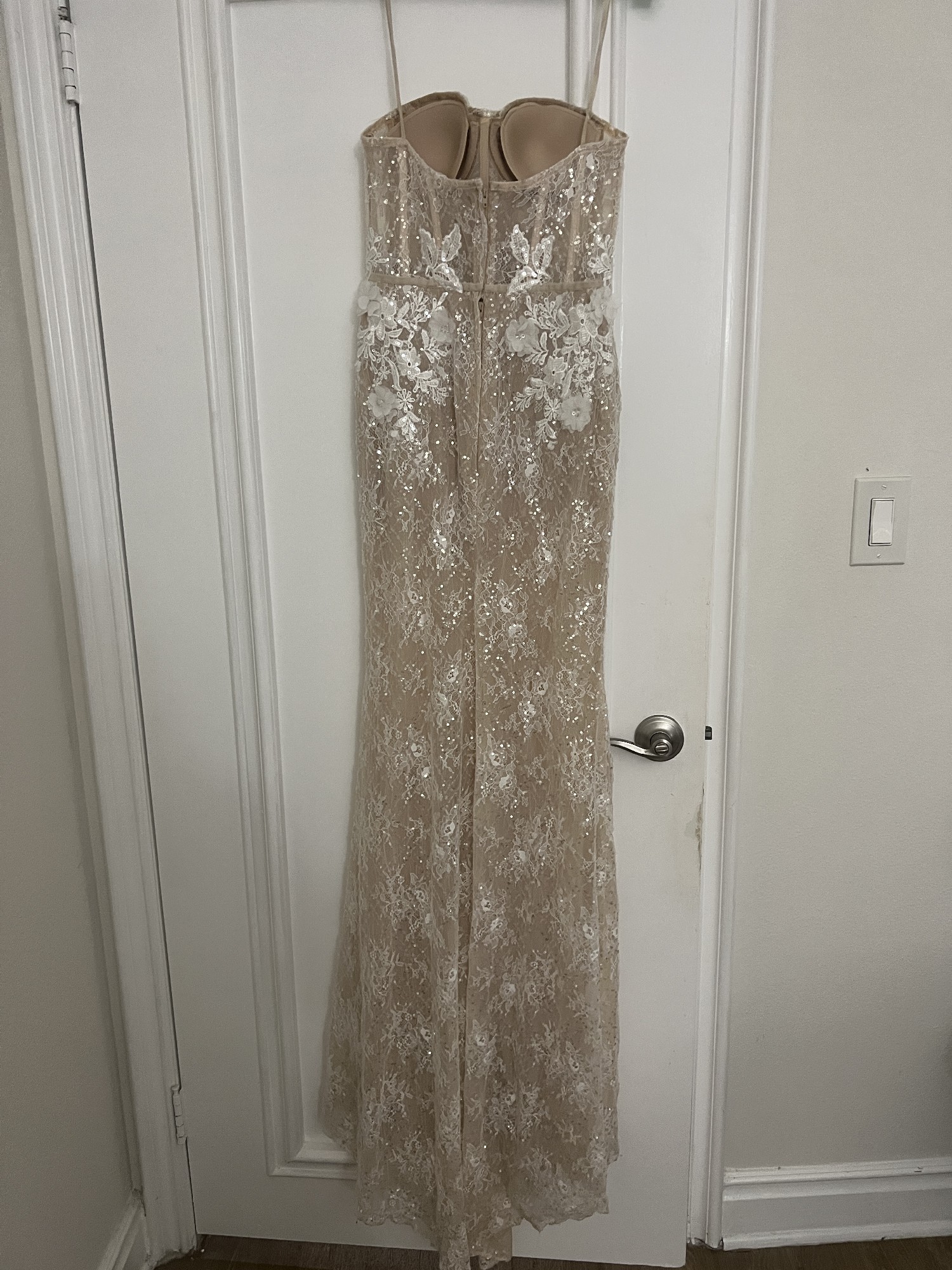 Beautiful 3D Muse by Berta dress (Hope). I purchased this as a sample dress and the size is 40. For reference, I'm typically a size small, a dress 2-4 (US), 117 pounds, and 5'3. I was in the sand most of the night, but had 4 inch heels which added to the total height of 5'8. I changed into this for my 2nd look during my reception, so I only wore it about 4 hours.