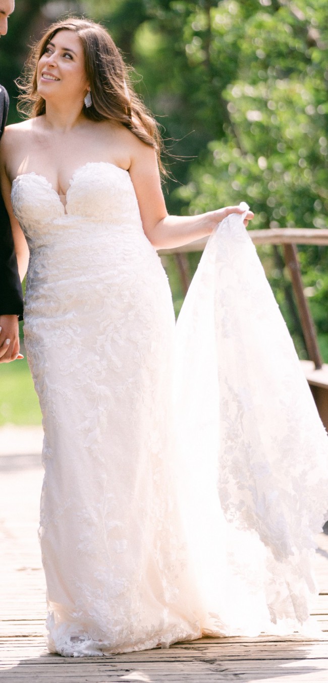 This stunning Sophia Tolli wedding dress features a sweetheart neckline which accentuates the décolletage perfectly. The trumpet silhouette gently hugs curves, flowing out beautifully at the knees, creating a mesmerizing effect with every step.