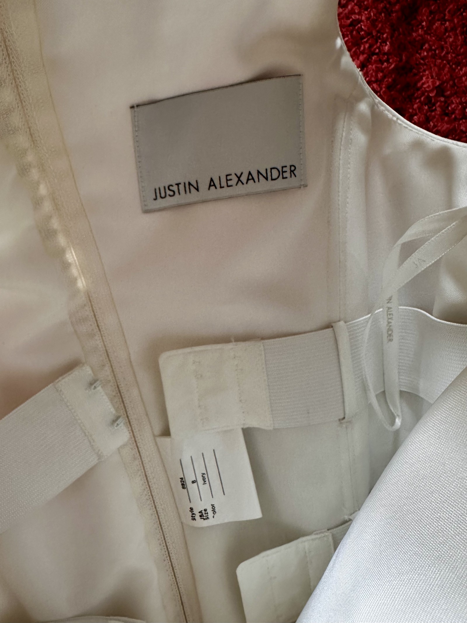 Comes with the original black Justin Alexander dress bag for safe storage and transport.