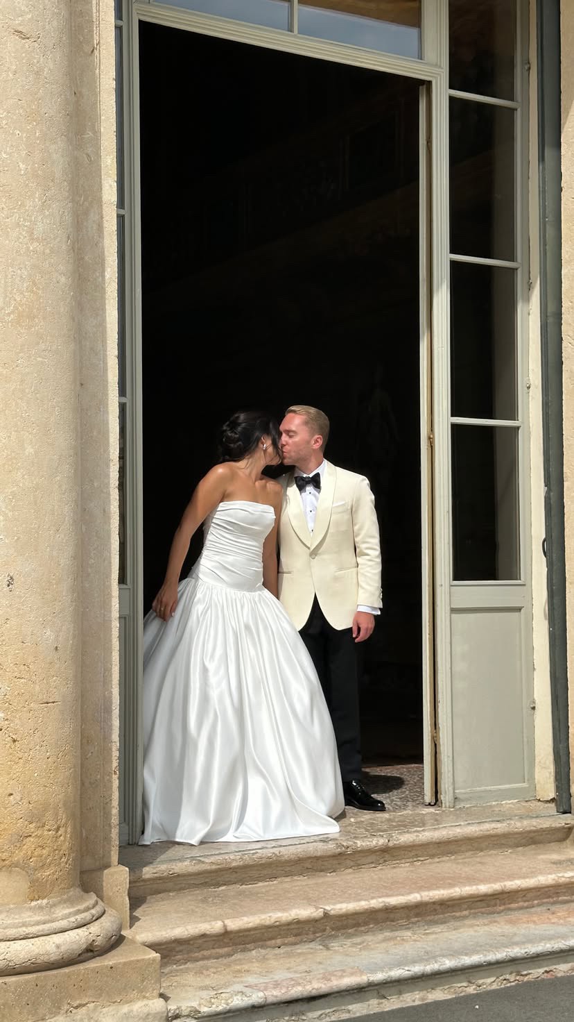 This Lucky dress by KYHA truly felt like a dream come true on my special day. Designed with elegance and timeless beauty in mind, the creamy satin fabric captured the light perfectly, creating a radiant glow as I walked down the aisle. The ballgown silhouette allowed me to feel like royalty, with a stunning straight neckline that added a touch of sophistication.