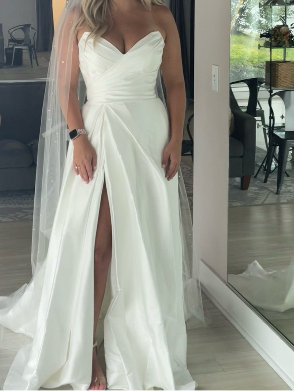 NEVER WORN OR ALTERED. Mori Lee wedding dress in size 8. This gorgeous A line gown is not only beautiful but also extremely comfortable. Dress size is 8 but fits more like a US 6. Only need to worry about bust and waist measurements. I purchased this when my measurements were bigger so could possibly fit up to small US 8