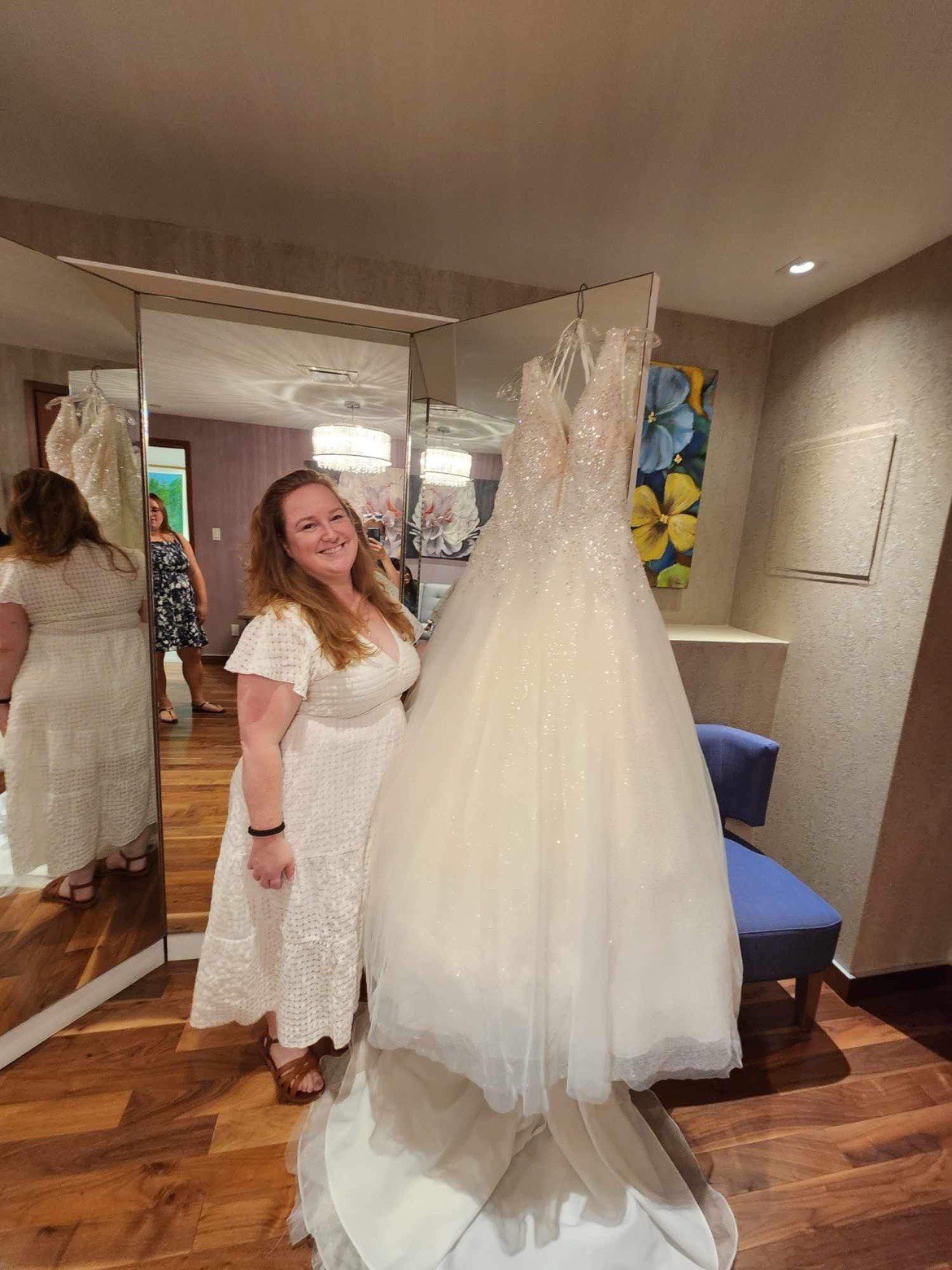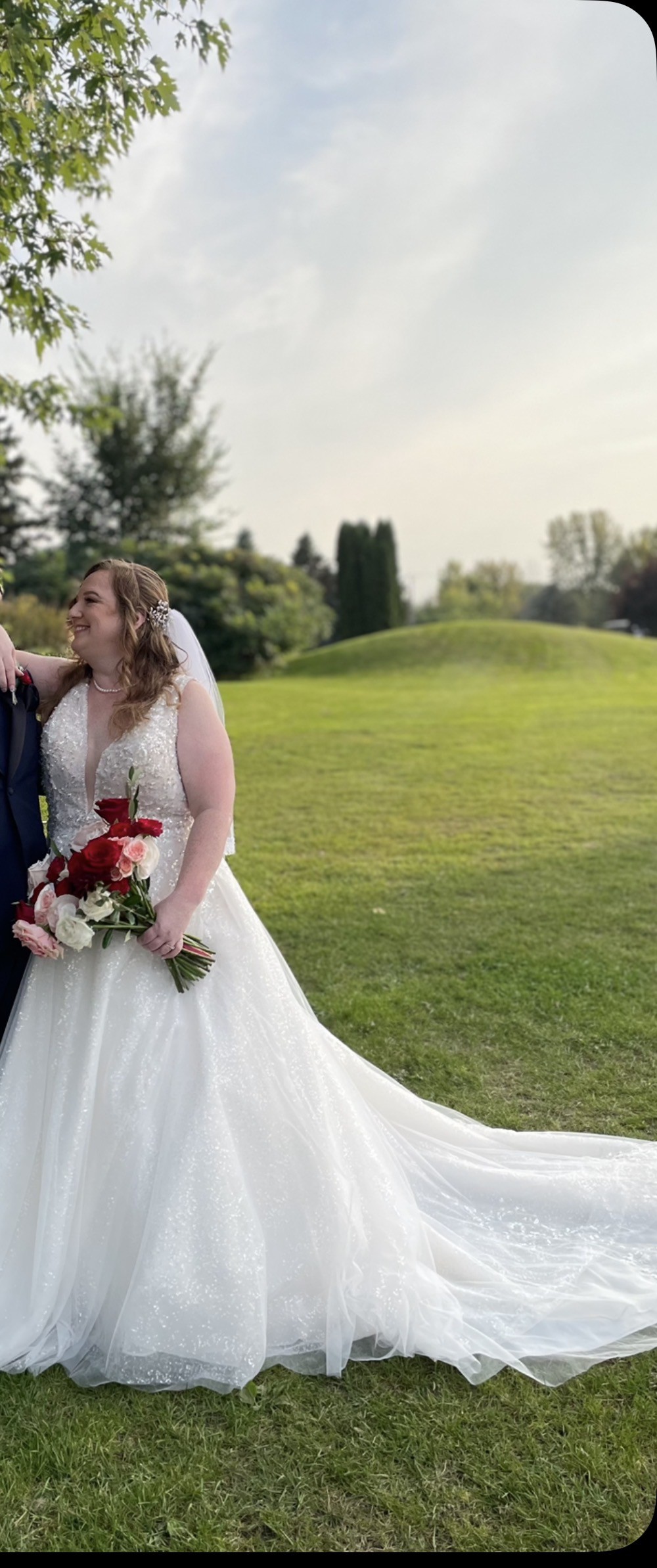 This dress is a perfect size 22, designed to celebrate your curves and make you feel absolutely radiant. As a bride, I can attest to how magical it feels to wear this dress, and I want to pass that joy on to someone else. If you're looking for a combination of comfort, style, and charm, this is the dress of your dreams.