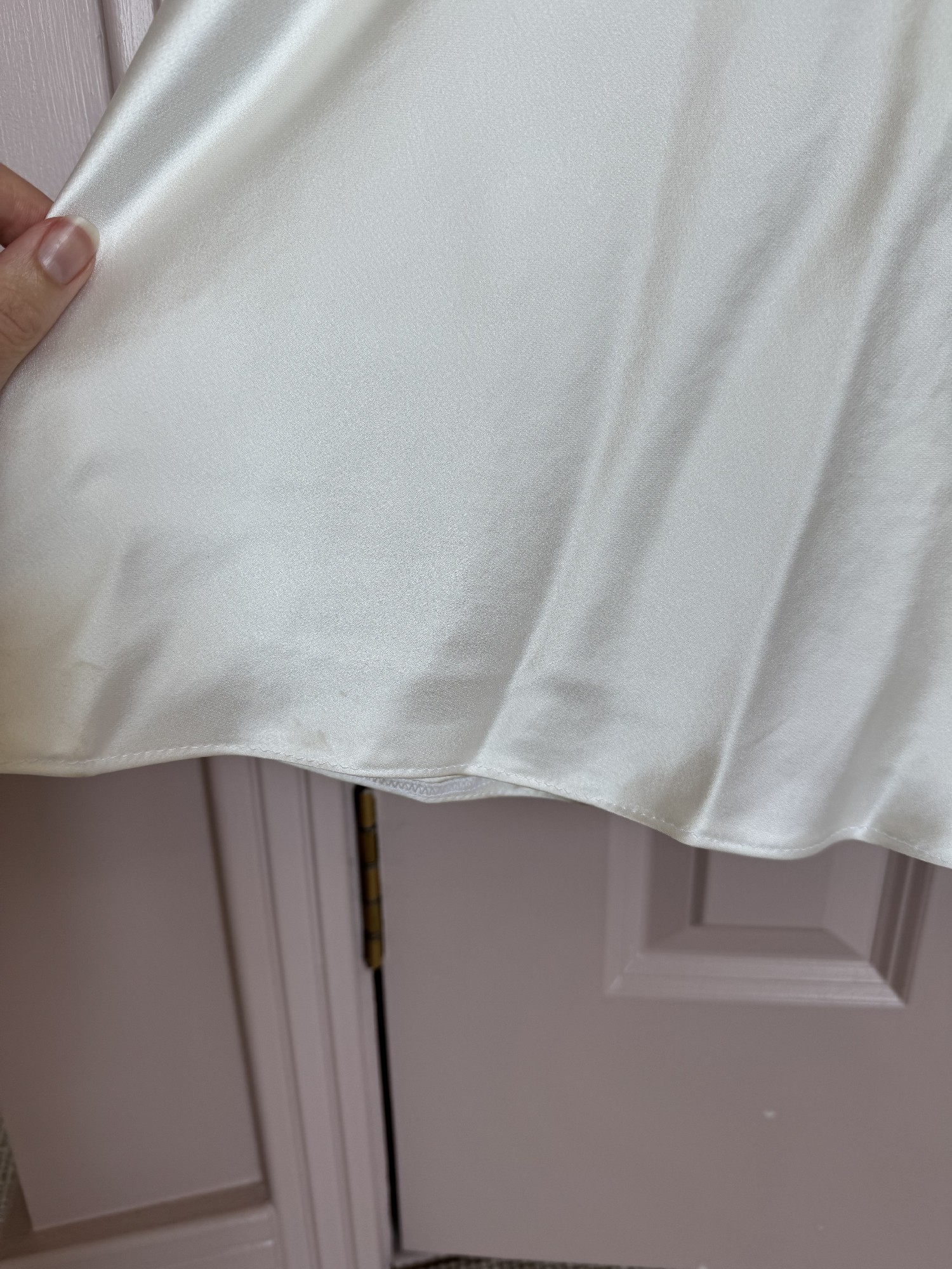 I did have the dress shortened slightly and as a result it's near perfect with only a few marks at the very bottom hem only noticeable close up.