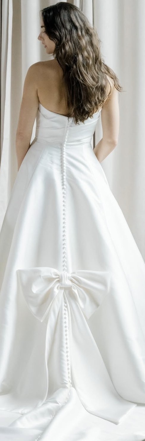 Crafted in a luxurious ivory fabric, this floor-length gown captures the light just beautifully, showcasing intricate beading that glimmers with every movement. The added charm of delicate bows infuses a playful touch, ensuring you remain unforgettable on your special day. One of the most delightful features is the hidden pockets, ideal for your intimate essentials or a sweet token to keep close as you celebrate your love.