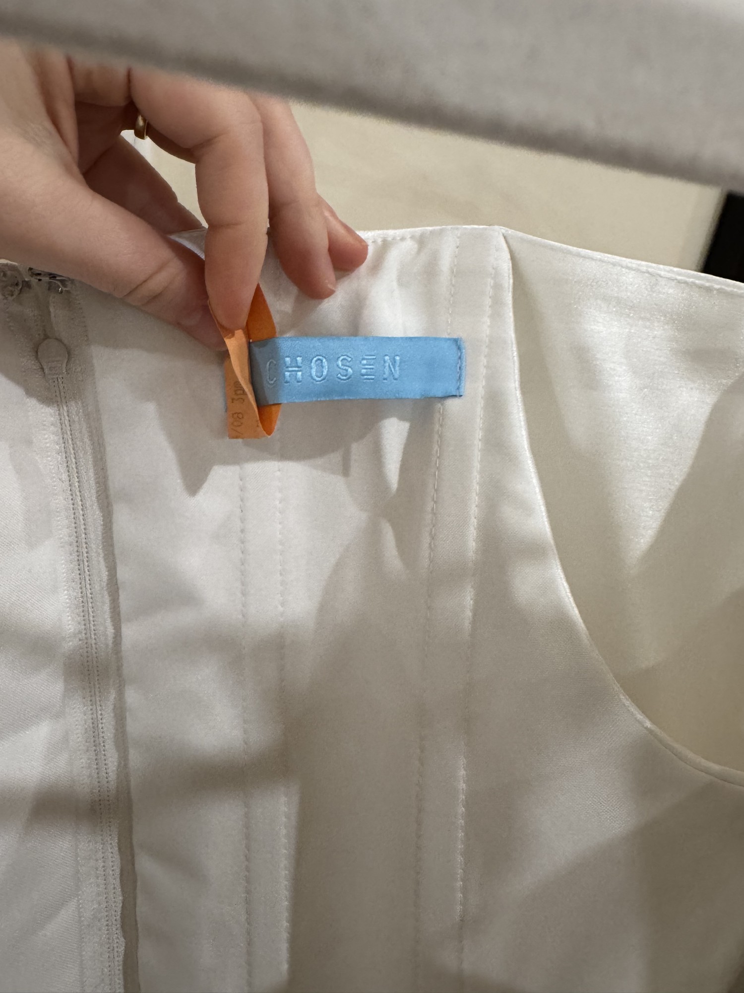 There is a fully structured corset within the dress that keeps you held in. Cut from luxe taffeta, featuring button detailing on the back. So comfortable and snug - the dress didn’t move all night!