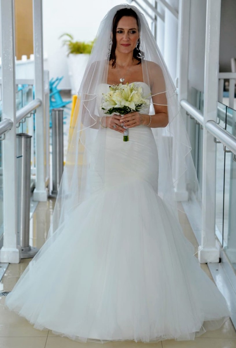 Morilee Mermaid-Style Wedding Dress with Veil.