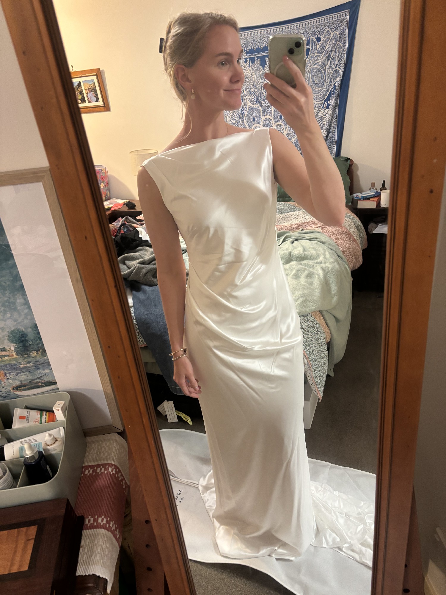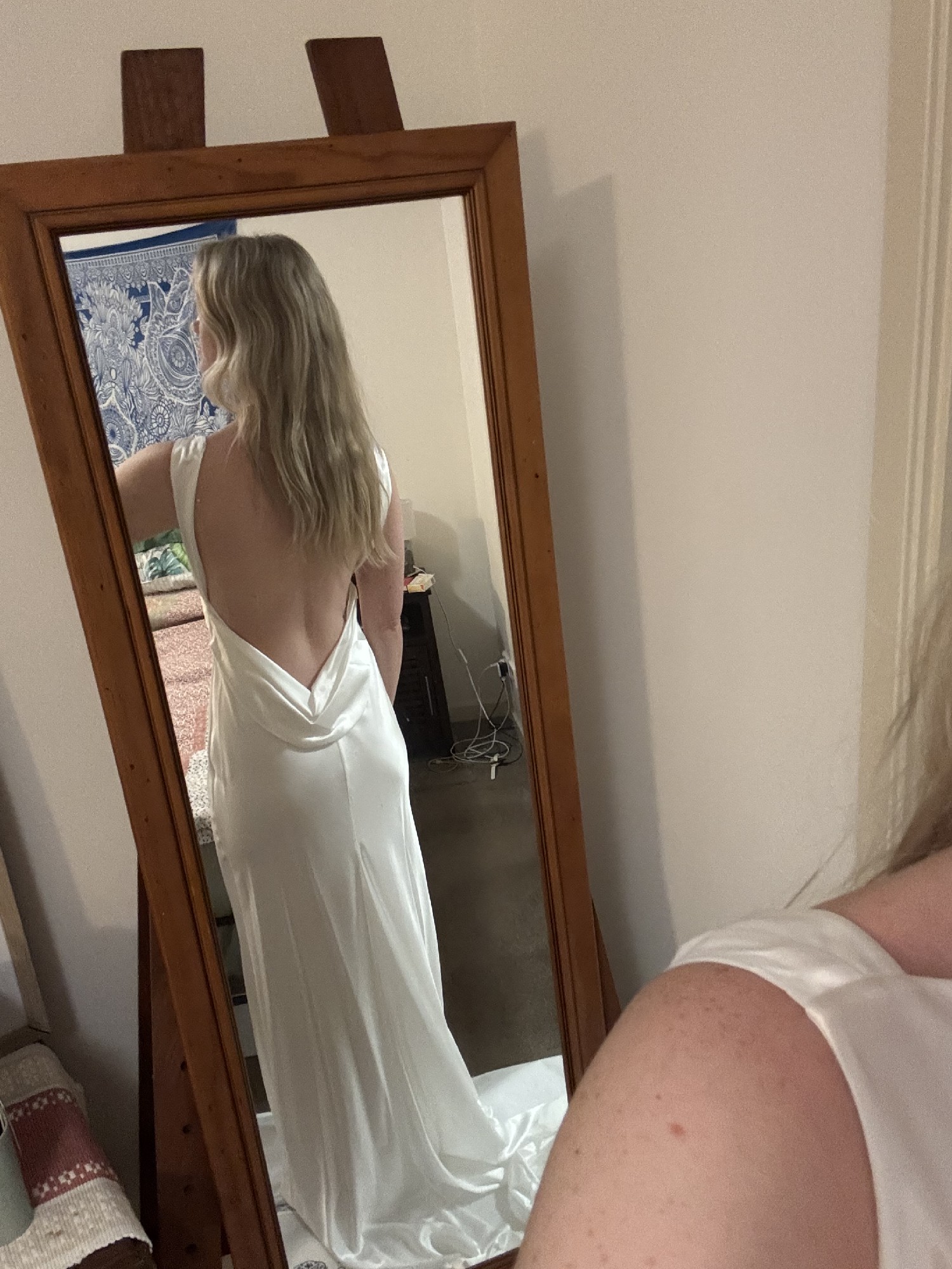 Brand new, never worn GLL Tia gown. Bought for $2500. Made to order in May. Not altered, size S. Beautiful dress - obviously needs a steam, but had just pulled it out of the box in the photo.
