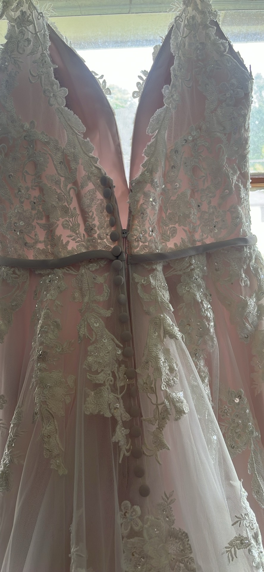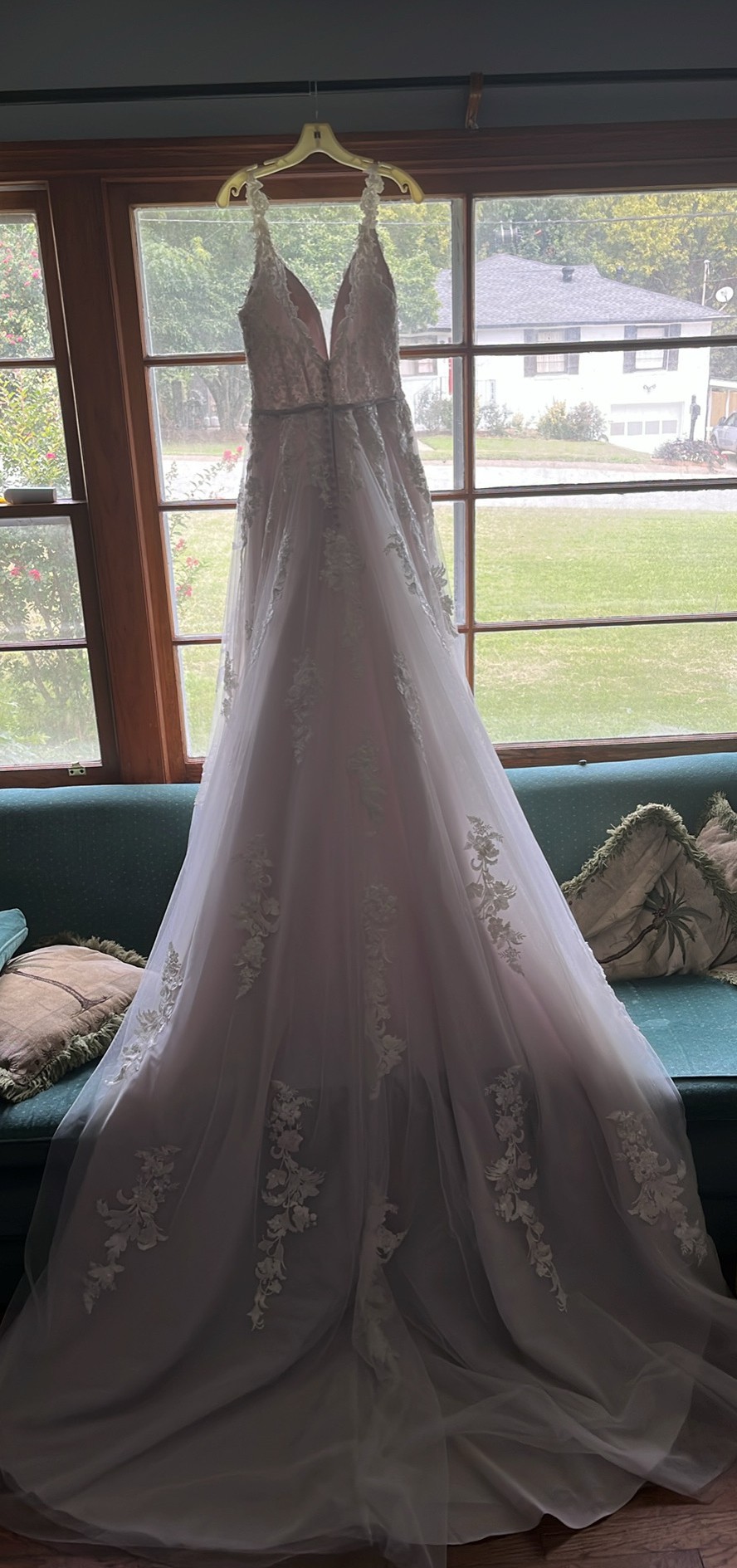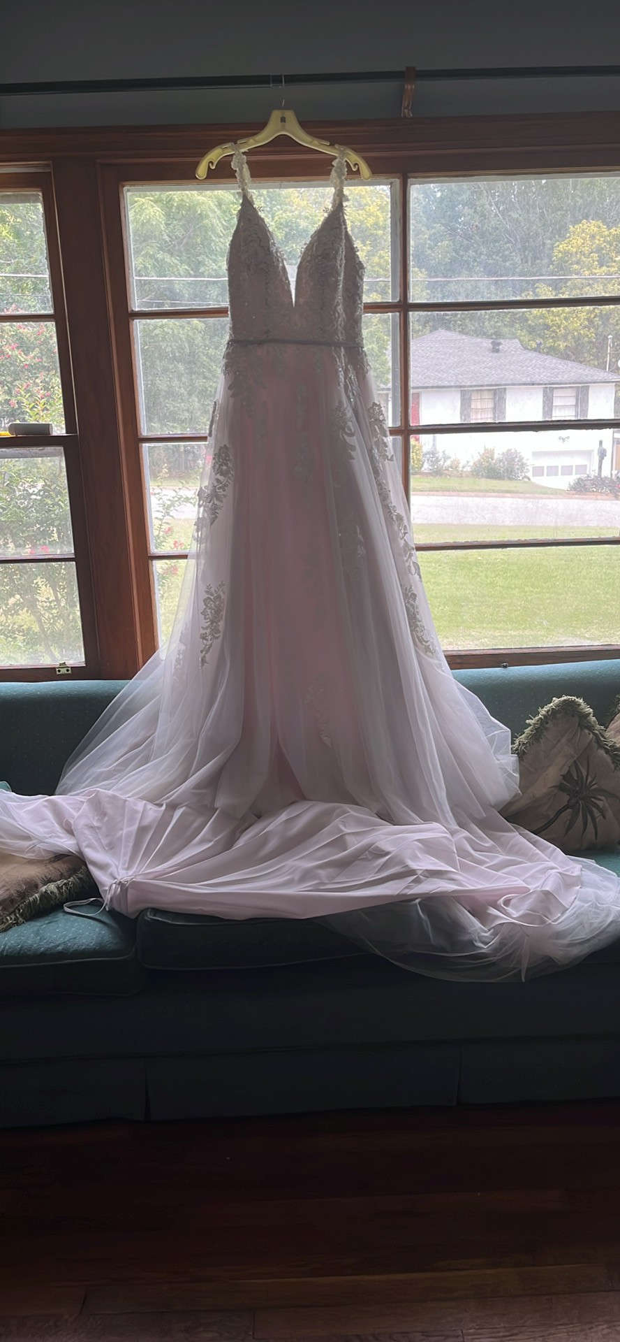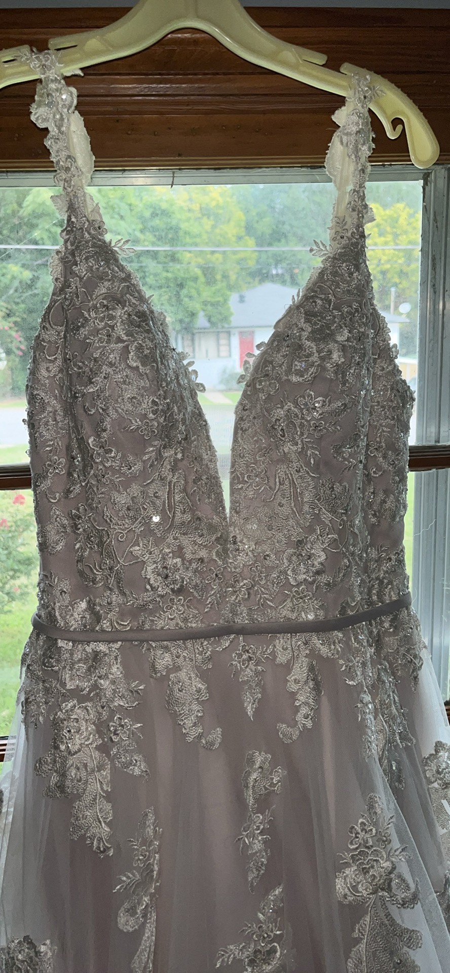 The pictures do not do it any justice, if you want more pictures I am happy to send them your way. It’s only been worn twice, and they were both when the dress was originally bought. Someone make an offer, make this gorgeous gown your own, I don’t even want all of the money back, I just want it gone! No it’s not a dress from a called off wedding, I got pregnant, we decided to just get married at the courthouse instead of investing in a wedding!