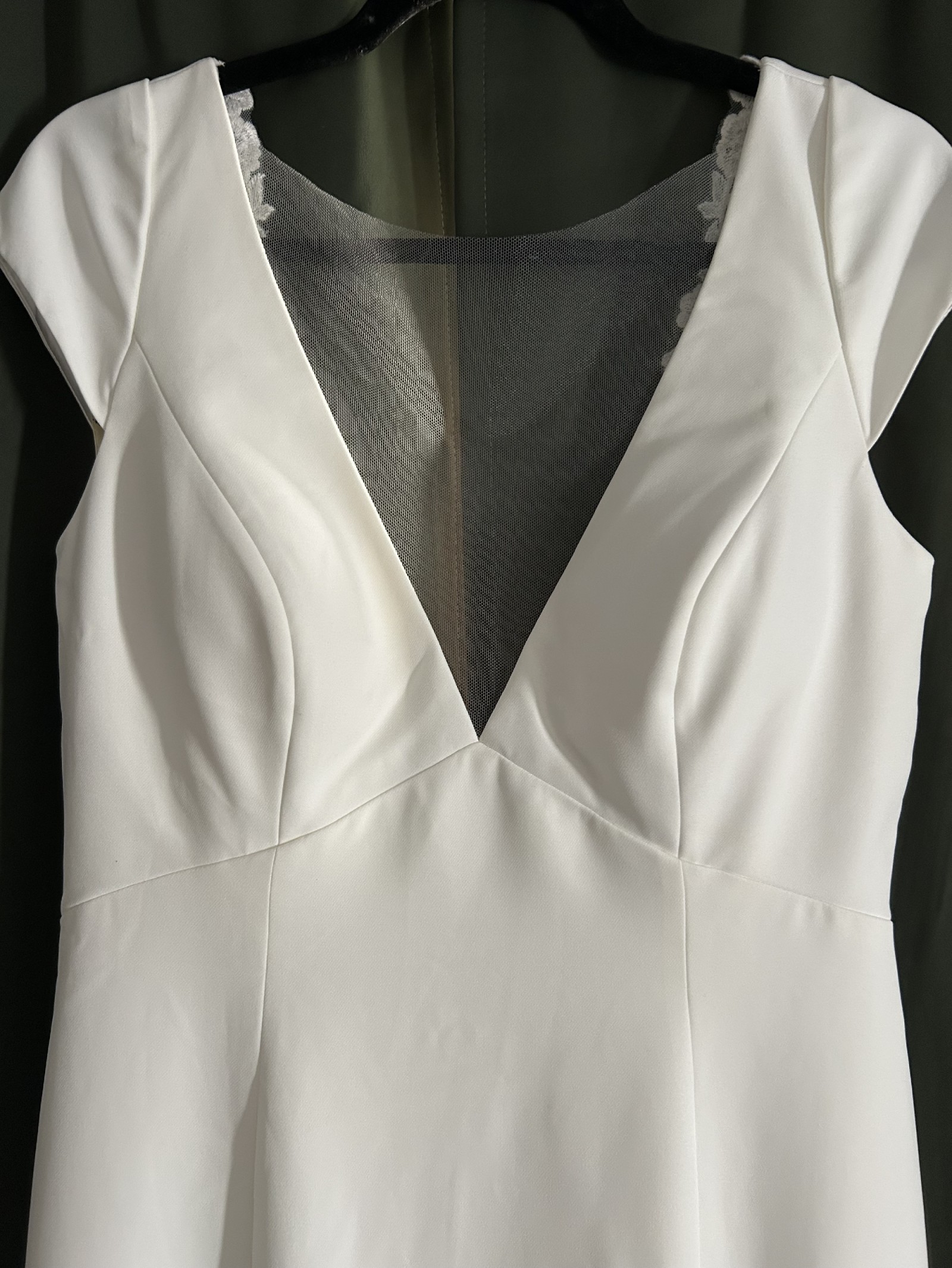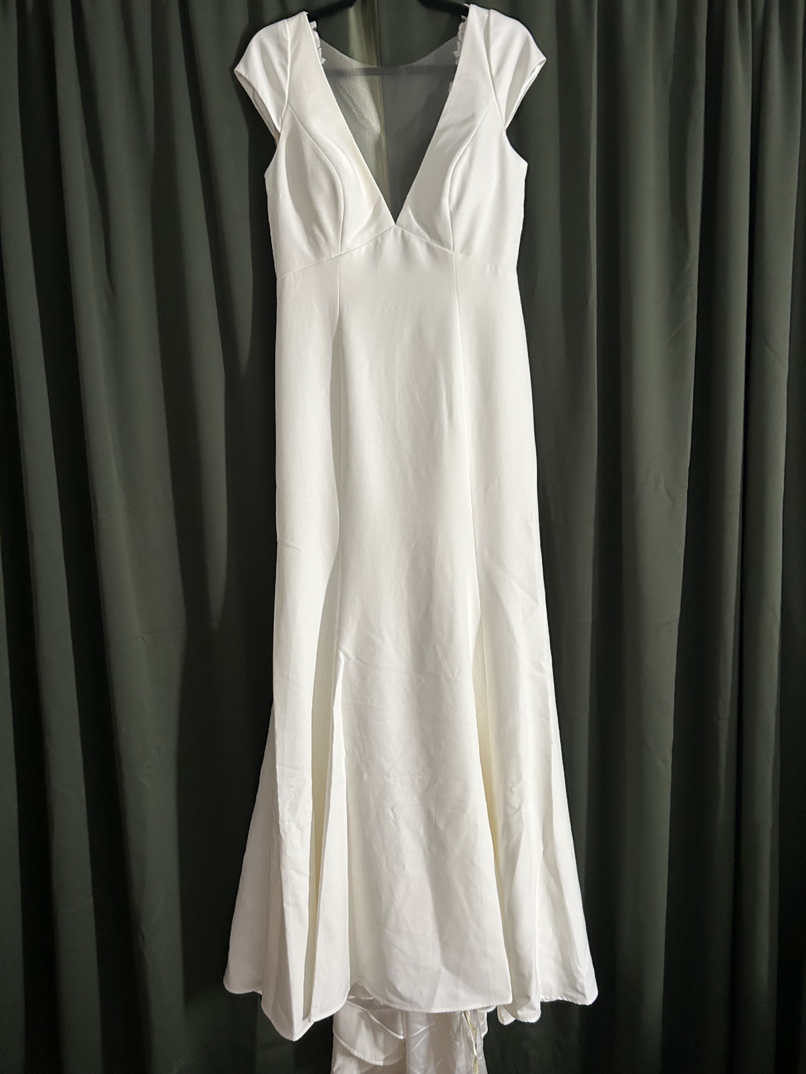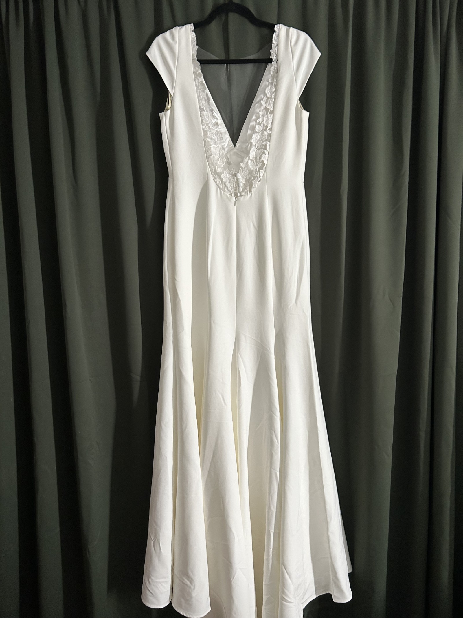 I bought this dress on Stillwhite and I loved it! It feels gorgeous on. It is so flattering. It has never been altered. It also came with the dress bag and the original included robe for getting ready.