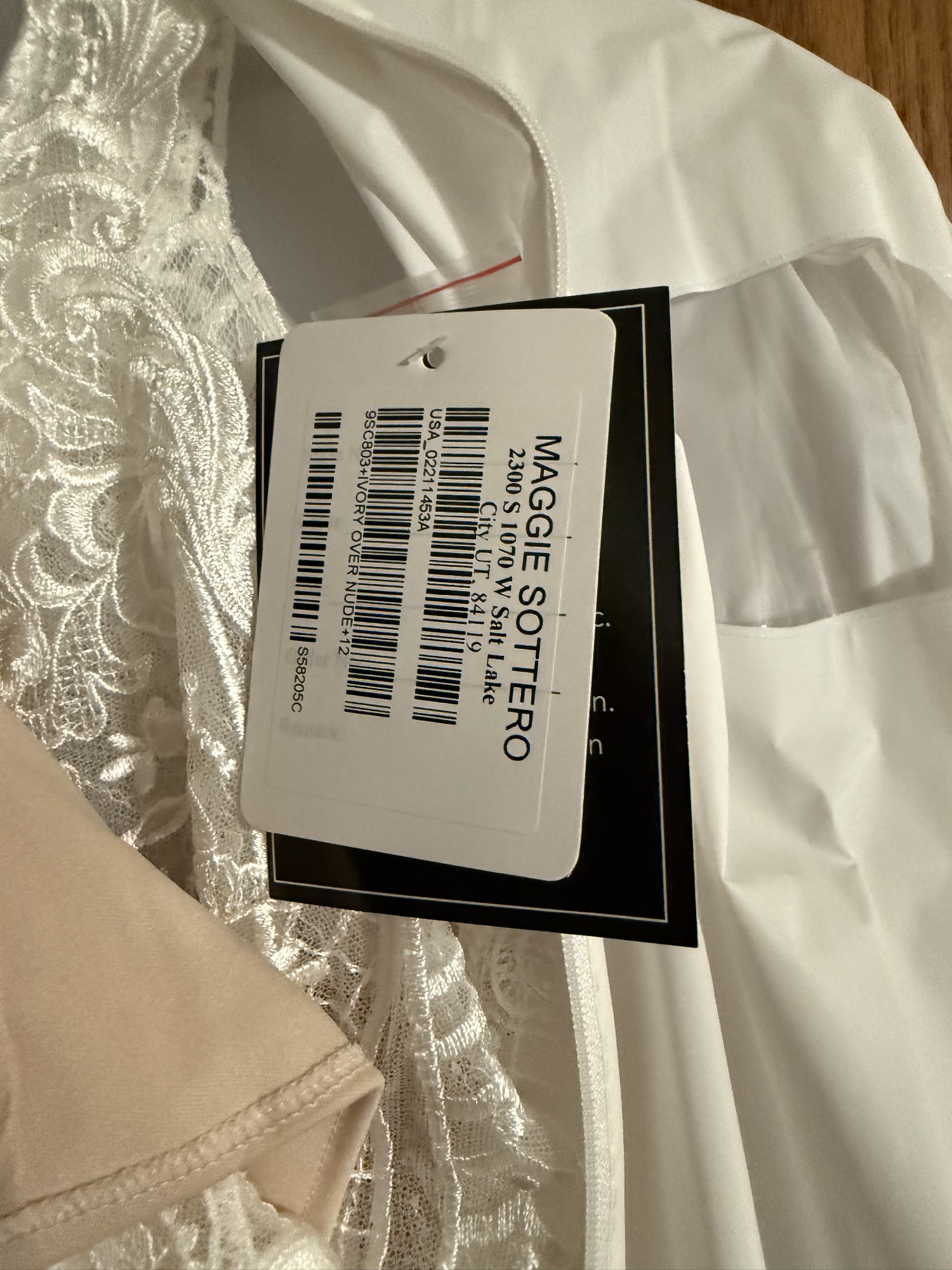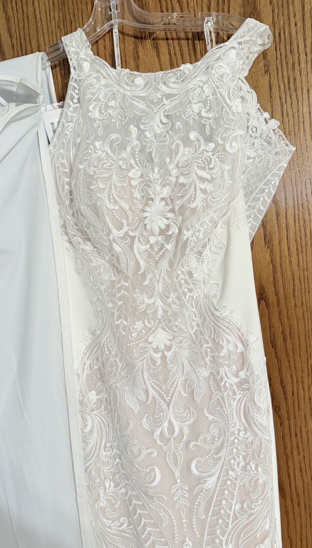 Dress is brand new. Never been tried on. Ordered and wedding was cancelled before it ever came in. It’s ivory over nude.