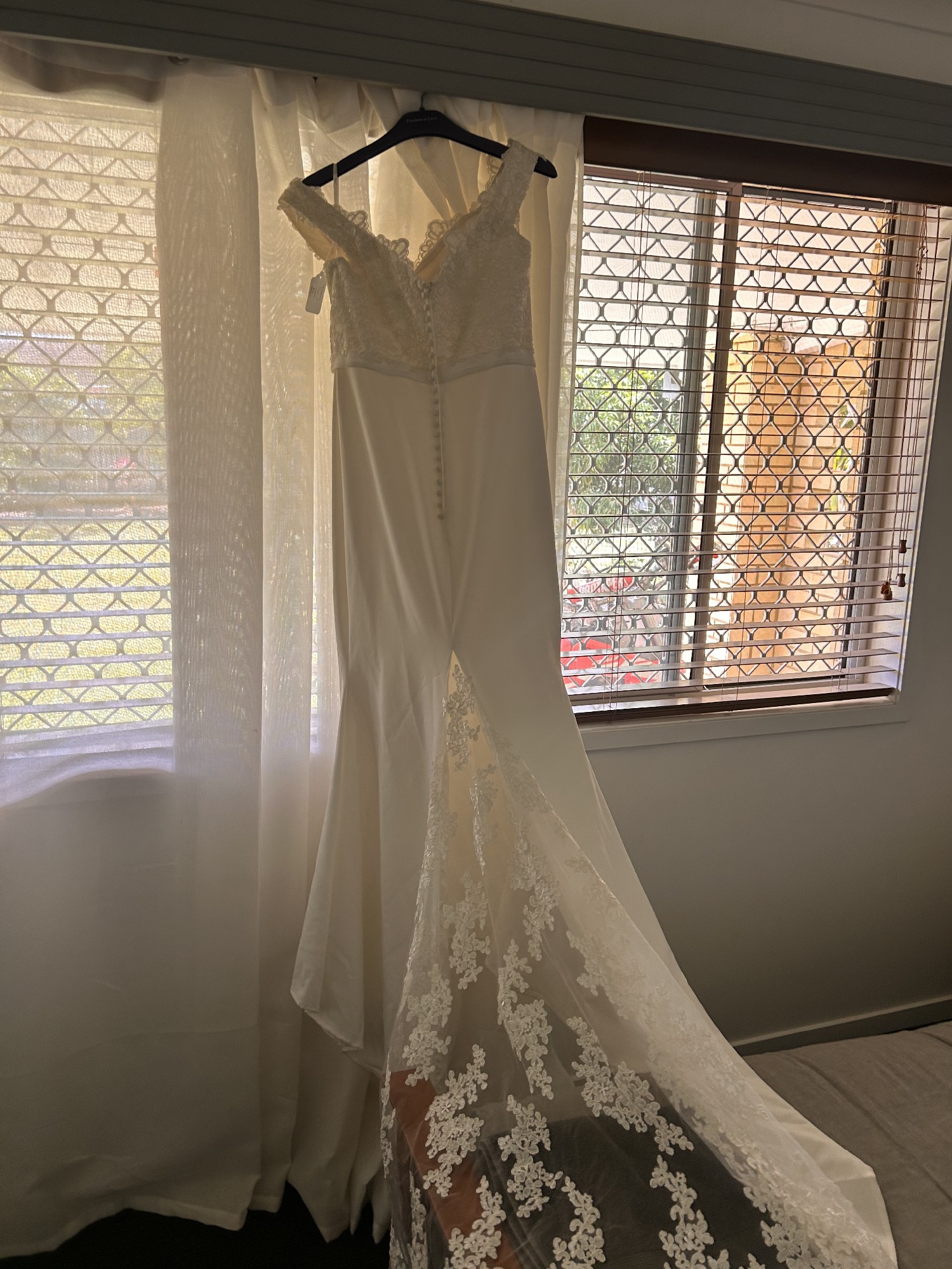 Jadore lace and crepe for and flare dress In great condition no flaws Purchases as an option for my own wedding but have changed my mind
