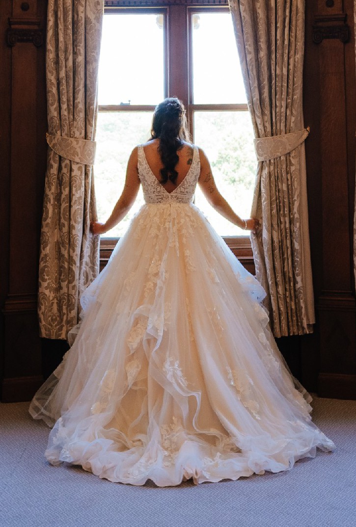 This stunning Essense of Australia D3384 dress was the centerpiece of my fairytale wedding, and I couldn’t have felt more beautiful wearing it. With its exquisite ballgown silhouette and graceful V-neckline, this dress flatters every curve while maintaining a timeless elegance. The soft ivory fabric captures light beautifully, making you radiate with joy on your special day.