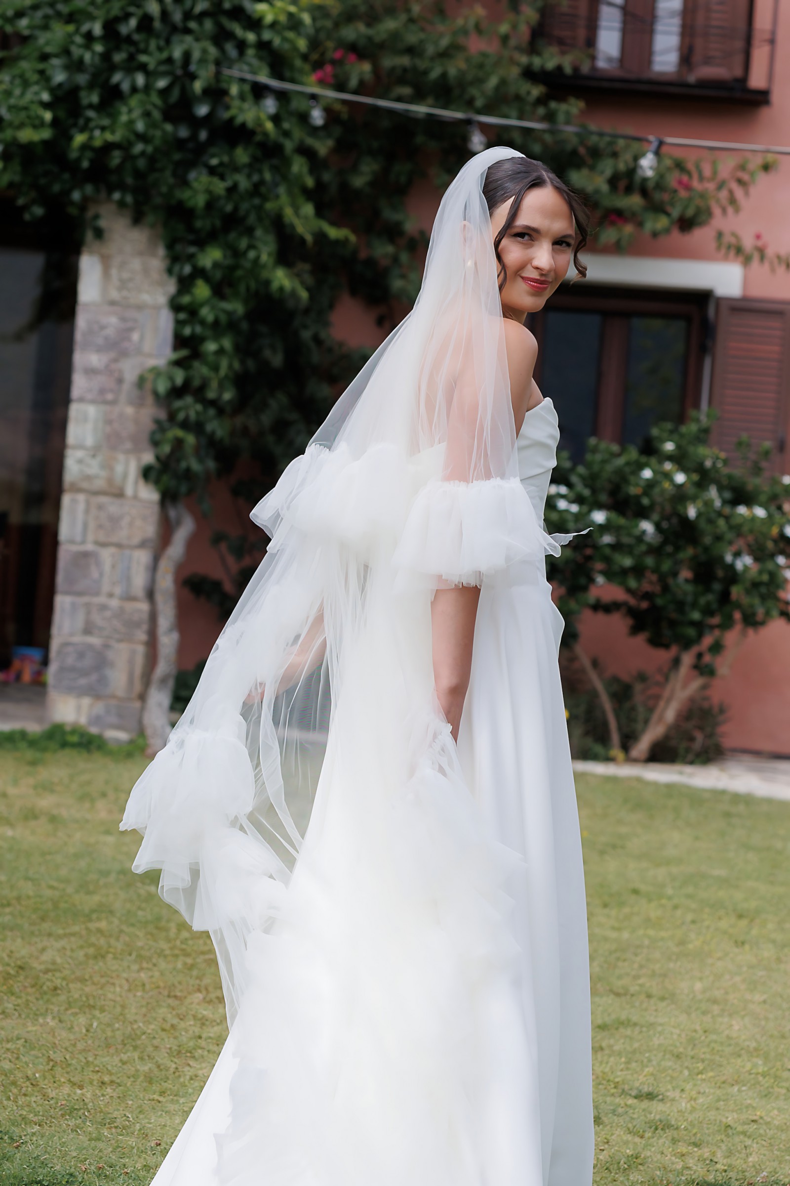 This is a two-tier ruffled veil, it’s absolutely gorgeous, price was £340 and it looks exactly like the halfpenny Margaret veil for a fraction of the price
