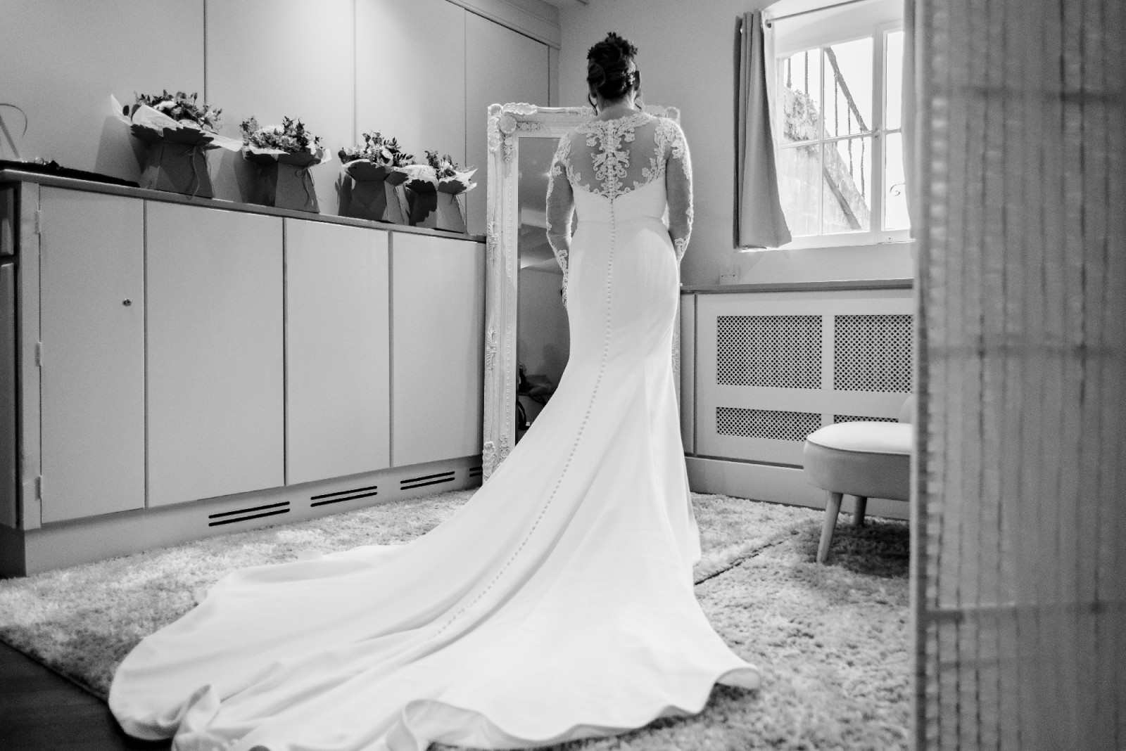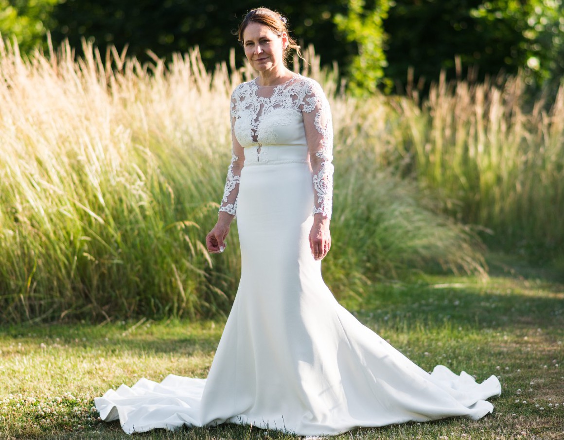 - Additional lace has been added to above the bust to under the neck line
