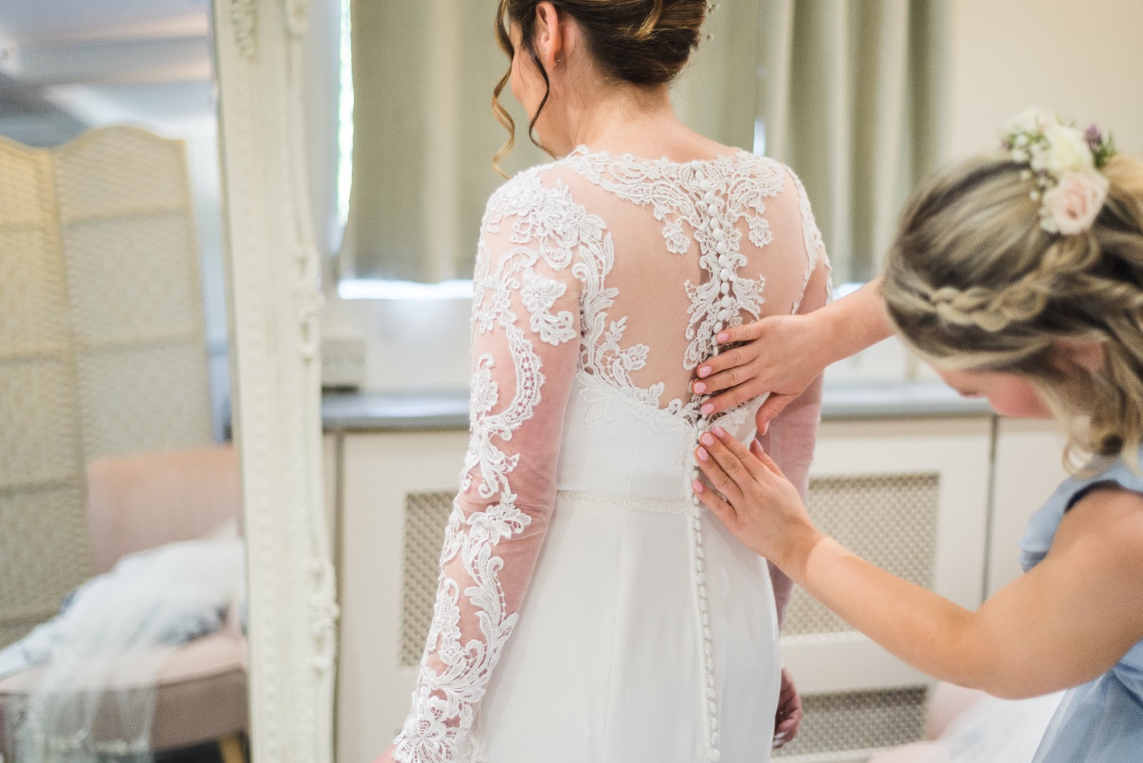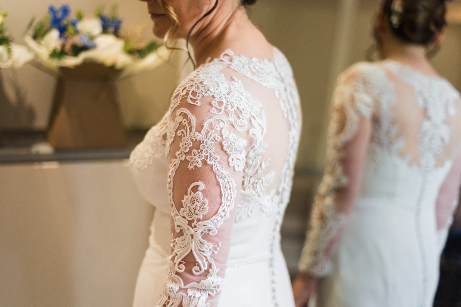 Long sleeves made from lace.