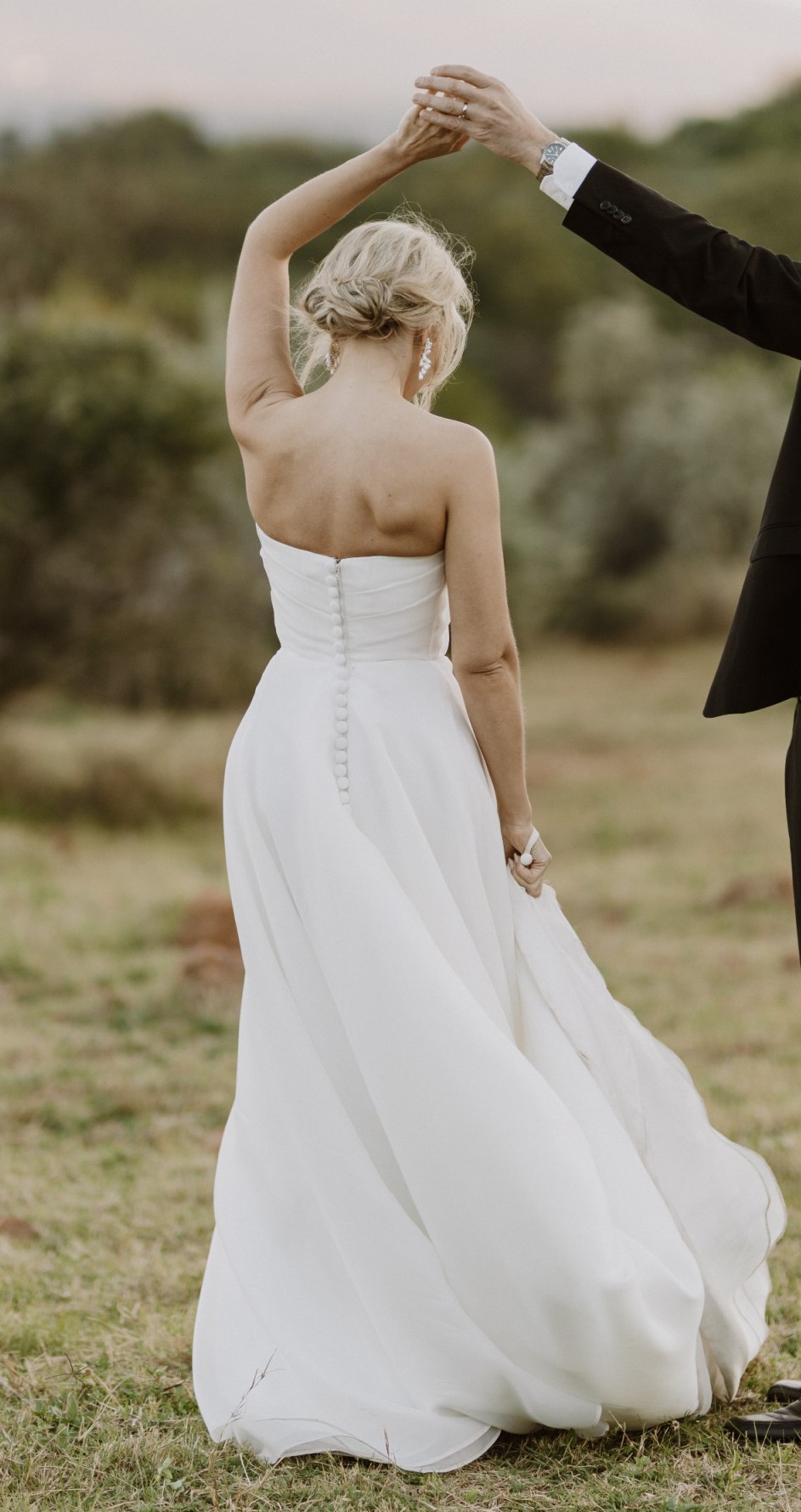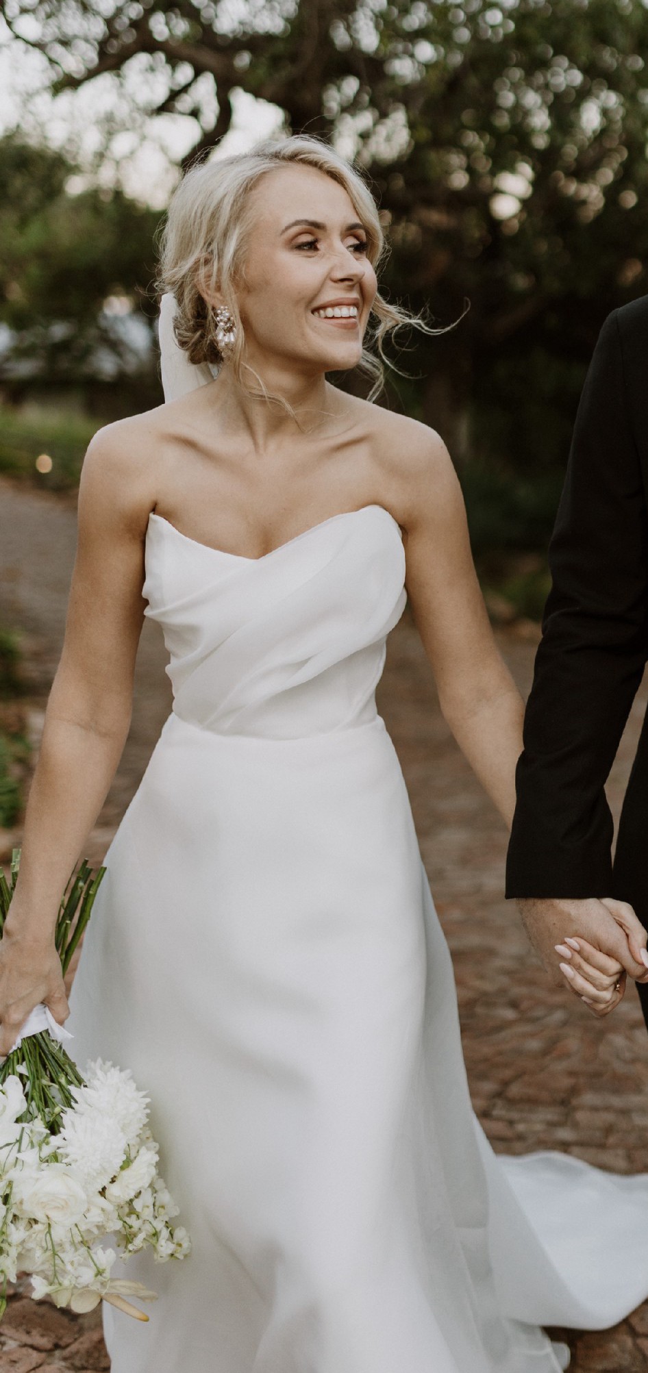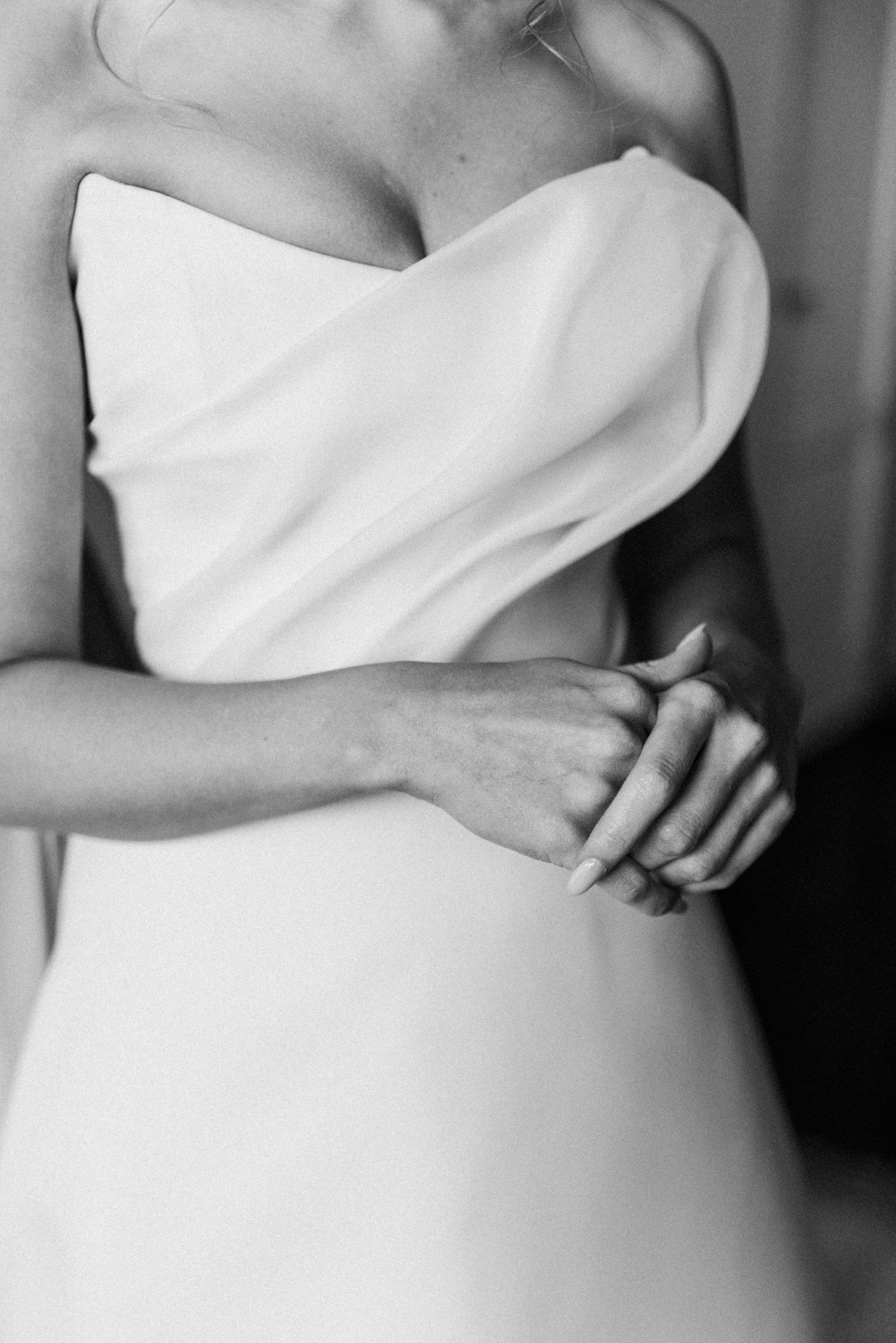 This ivory organza gown was my ethereal dream come to life. Flowy and feminine, yet snatched in all the right places, it feels both modern and timeless. The strapless bodice is gracefully draped, creating soft, fluid folds that flatter and frame the neckline, while hidden boning offers elegant support.