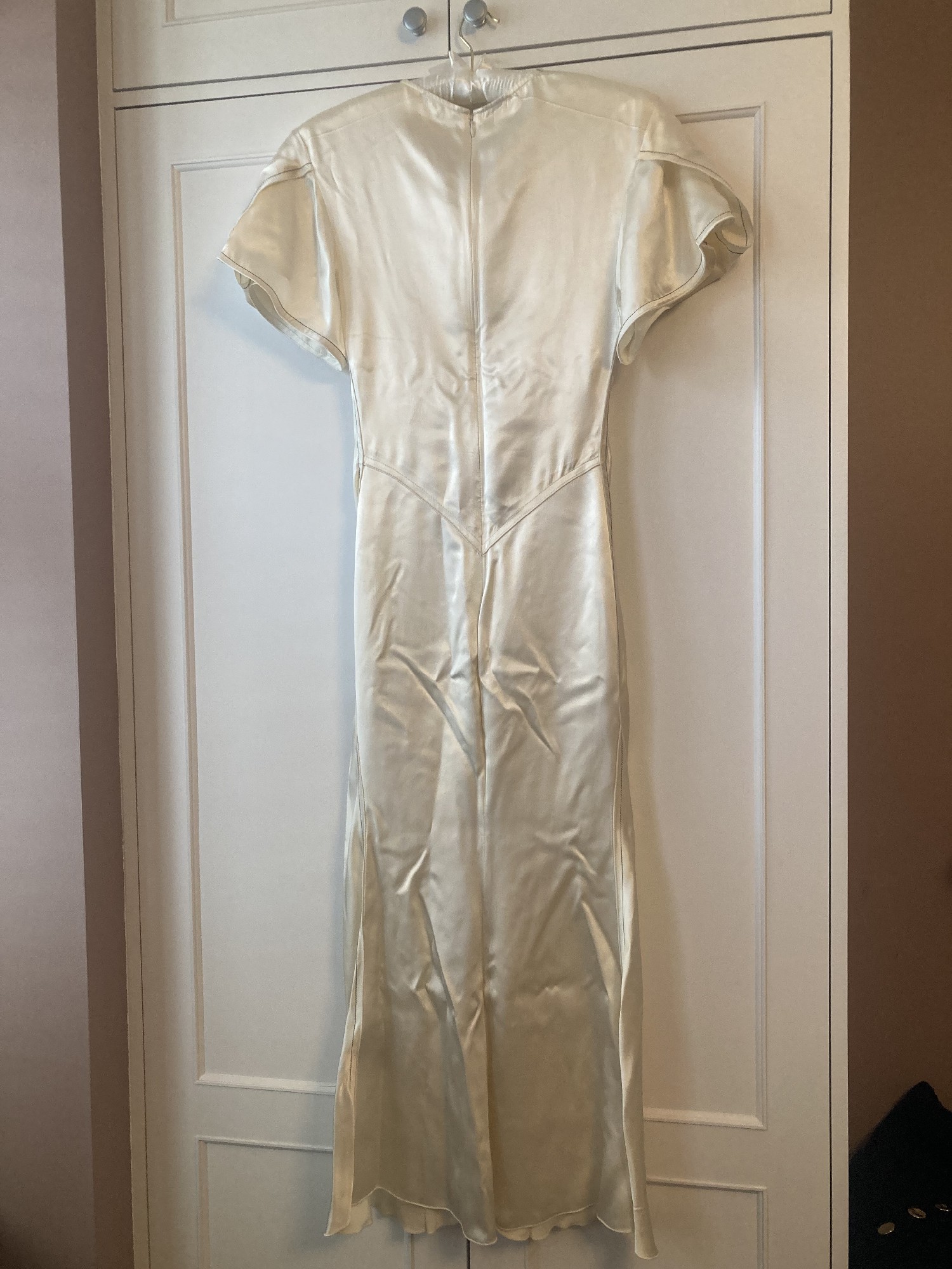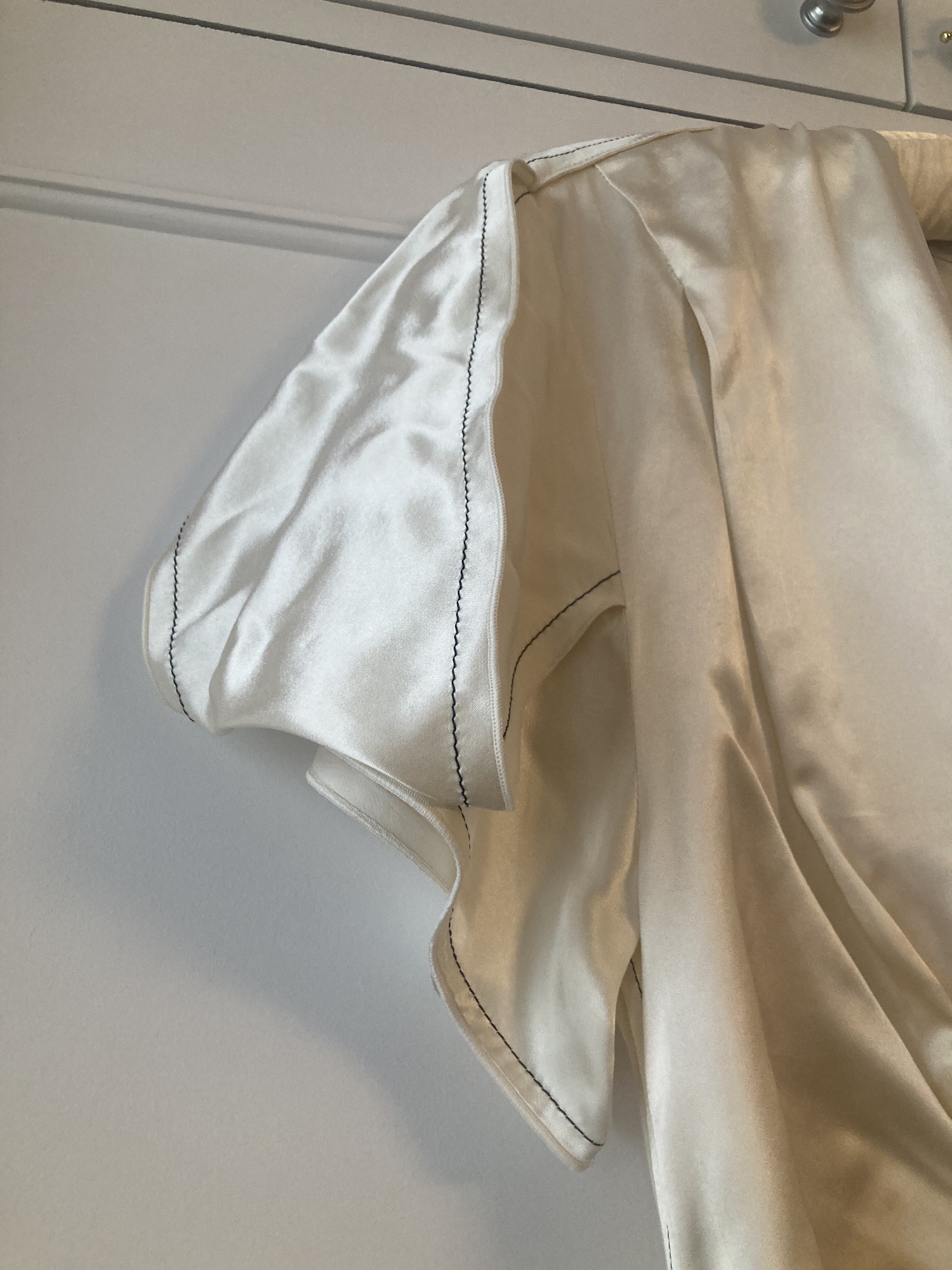 Cut on the bias and beautiful black stitching on the sleeves and down the sides
