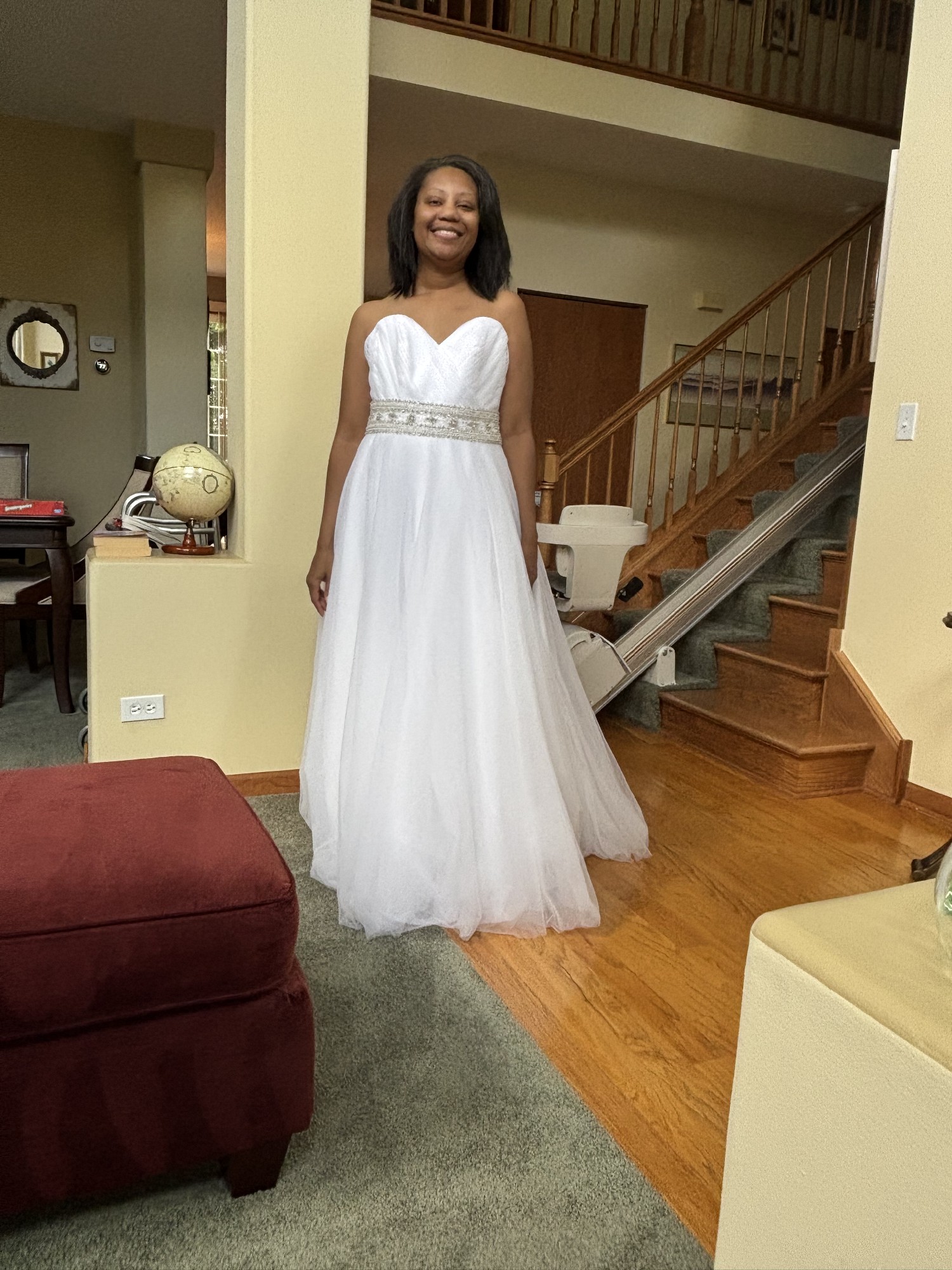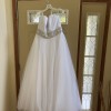 In a size 16, this ballgown is tailored to flatter your figure, enhancing your natural beauty while allowing freedom of movement for dancing the night away. Step into a world of romance and elegance with this unforgettable dress, designed for the bride who dreams of a magical celebration surrounded by love. Make your wedding day one that you and your guests will remember forever.