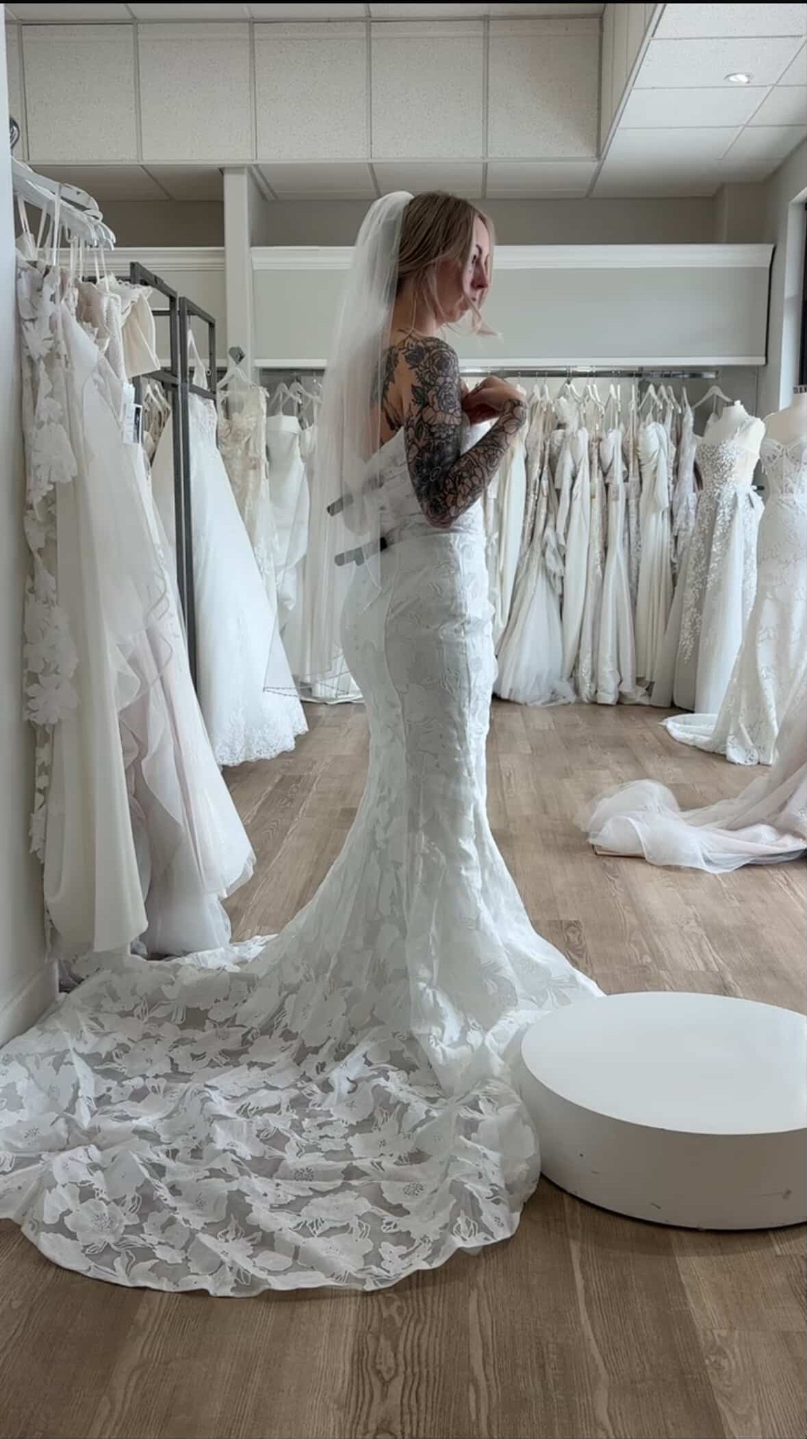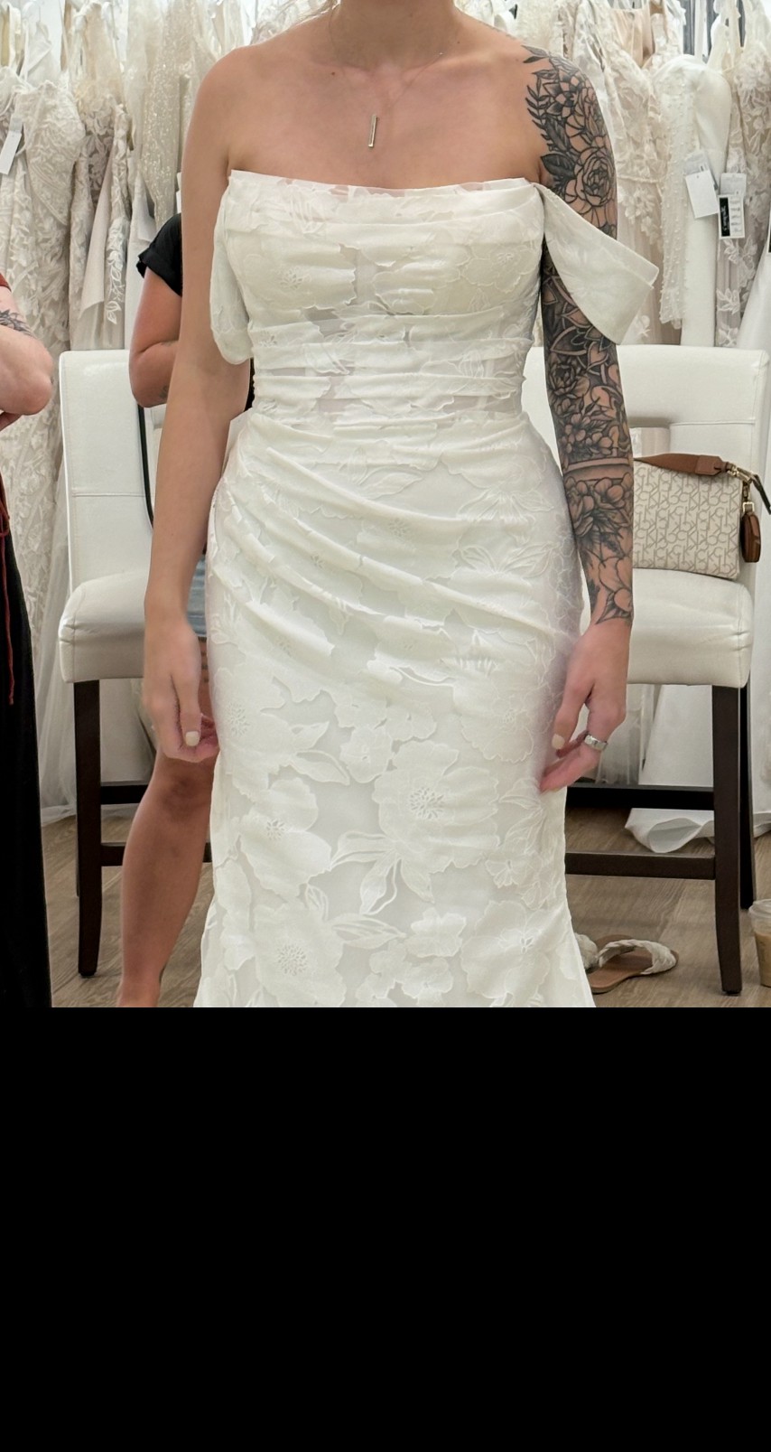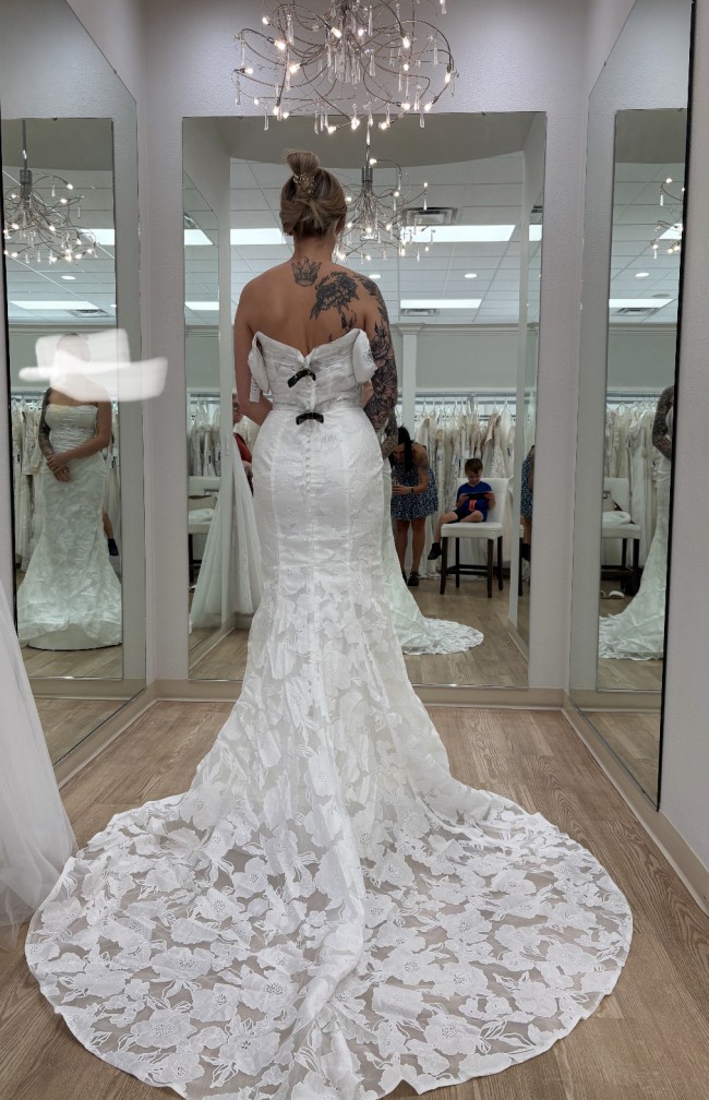 Lace wedding dress. Needs to be steamed. Never worn. Never altered. Beautiful.