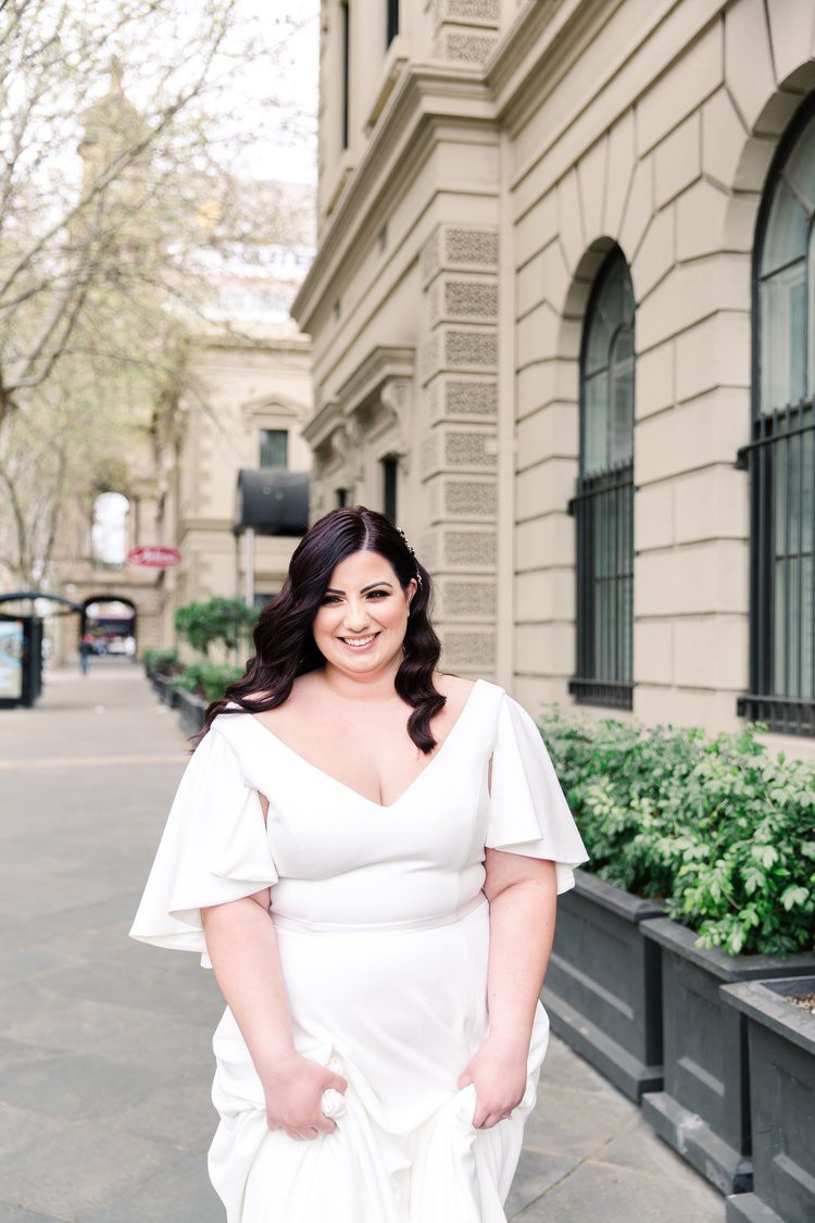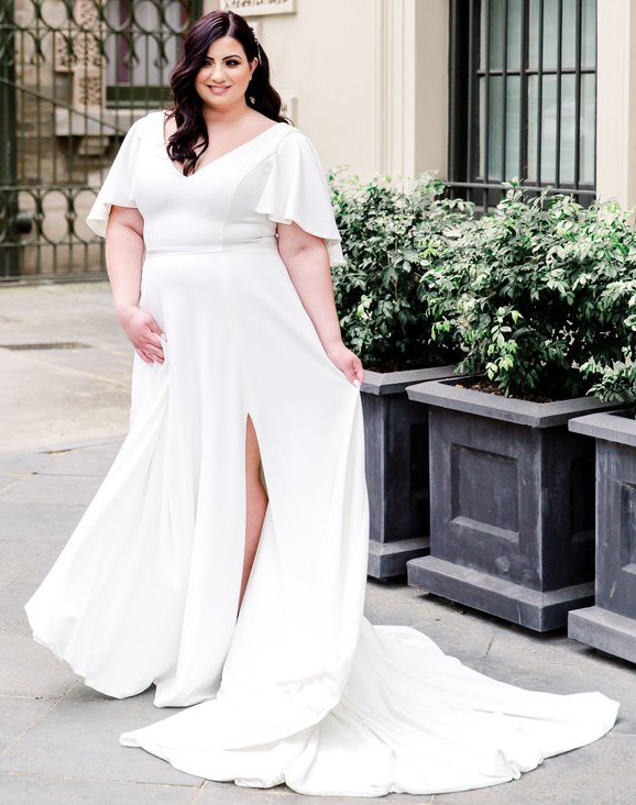 This gown is in excellent condition and is an ex-sample from a bridal shop. It has never been worn to a wedding, only tried on by brides. The designer has left a seam allowance, which means the dress can be tailored up or down in size. You can easily adjust it up by one size or down by two sizes without affecting the style of the dress. Please feel free to reach out if you have any questions.