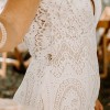 The dress offers an optional train hook button on the back. I've included photos with the train out during the ceremony and a photo of the back with the train hooked.