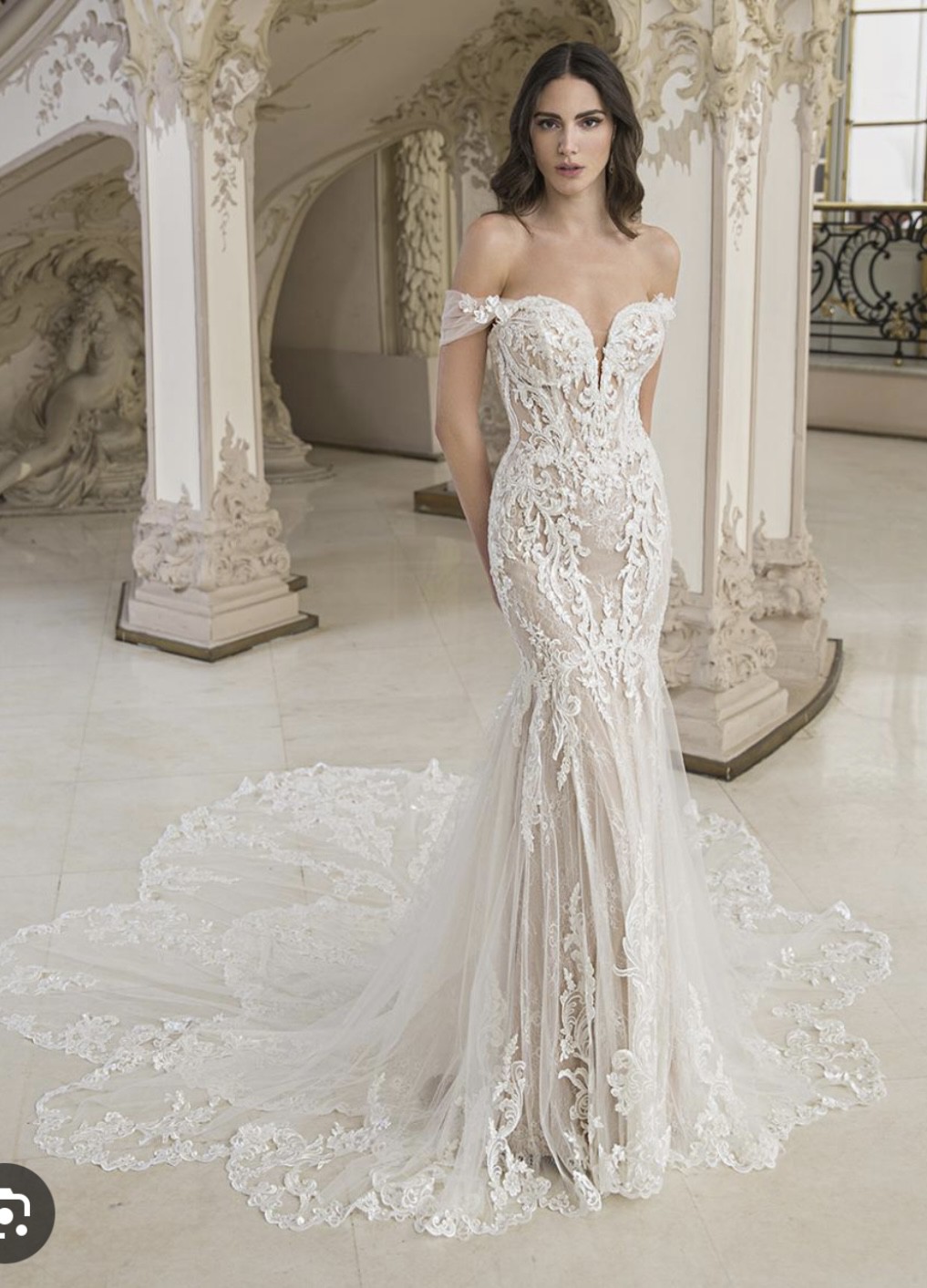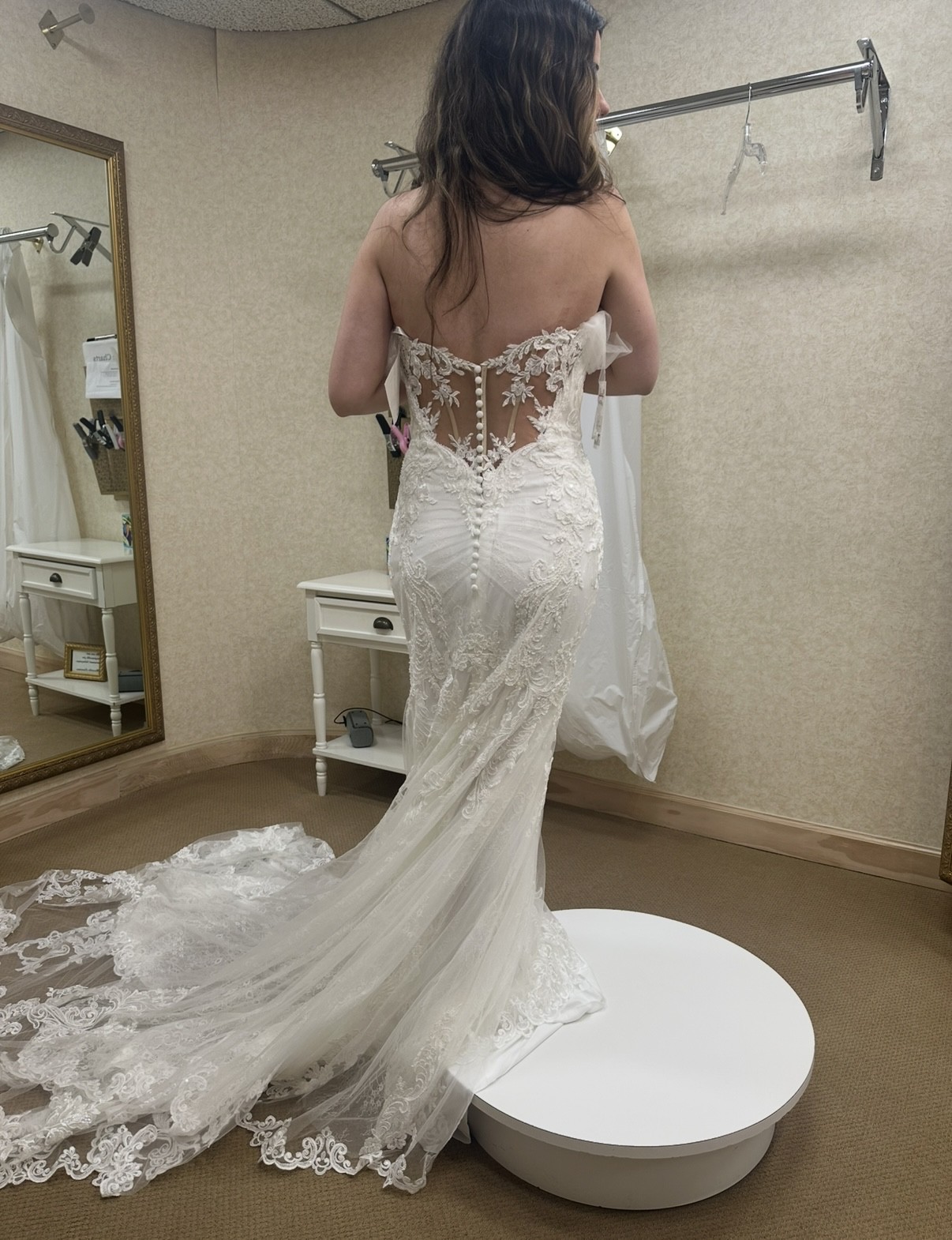 Spaghetti straps with small detailing were added but can be easily removed. Detachable sleeves shown in picture 4 are also included (not attached to dress)