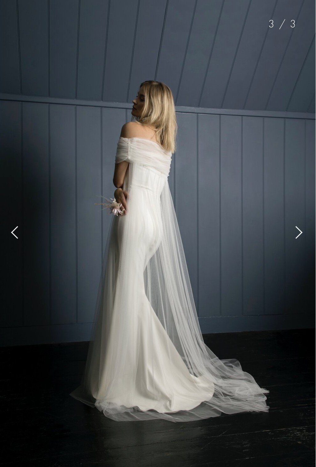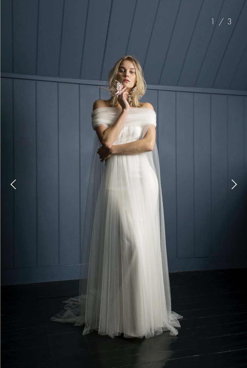 Stunning and never worn Halfpenny London tulle cape (RRP€895) that transforms a simple dress into an ethereal dream. The cape is removable and sits across the shoulders. It's light as gossamer and so unbelievably chic, allowing you to create an entirely different look really easily for your gorgeous wedding day.