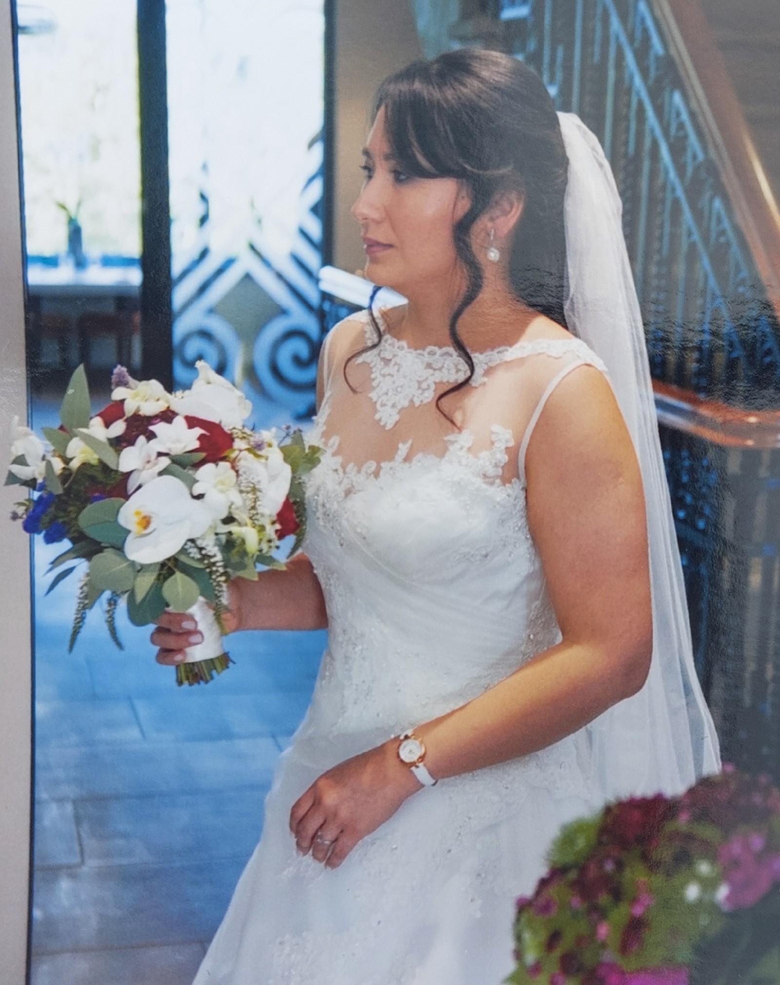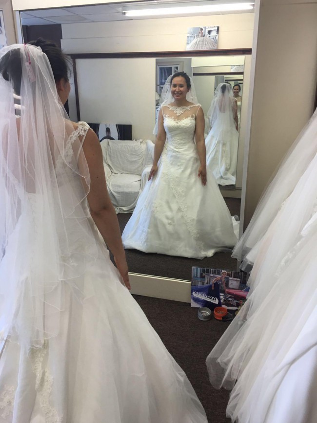 I had my own veil and a petticoat underneath to lift the skirt of the dress (sorry, not included in the sale). Beautiful embroidery detail.